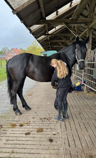 - Im Auftrag - Verkaufe ich eine 6-jährige Friesenmix-Stute (Friese x ungarisches Warmblut). Sie ist ca. 1,70 m groß und hat einen kräftigen, schweren Warmblut-Typ. Ausbildung & Einsatzbereiche Lili wurde die letzten zwei Jahre freizeitmäßig mit Schwerpunkt Dressur geritten. Beim Vorbesitzer lief sie vor der Kutsche, und ich kann sie mir gut als zuverlässiges Kutsch- oder Freizeitpferd vorstellen. Aktuell ist sie nicht im Training und müsste wieder angeschoben werden. Charakter Lili hat ihren eigenen Kopf, ist sturköpfig und definitiv nicht für Anfänger geeignet. Sie braucht eine konsequente Führung und tägliche Bewegung, um ihr Potenzial auszuschöpfen. Verkaufsgrund Aufgrund beruflicher Situation fehlt aktuell die Zeit, Lili gerecht zu werden. Daher wünsche ich mir für sie ein passendes Zuhause, in dem sie die nötige Aufmerksamkeit und Förderung bekommt.