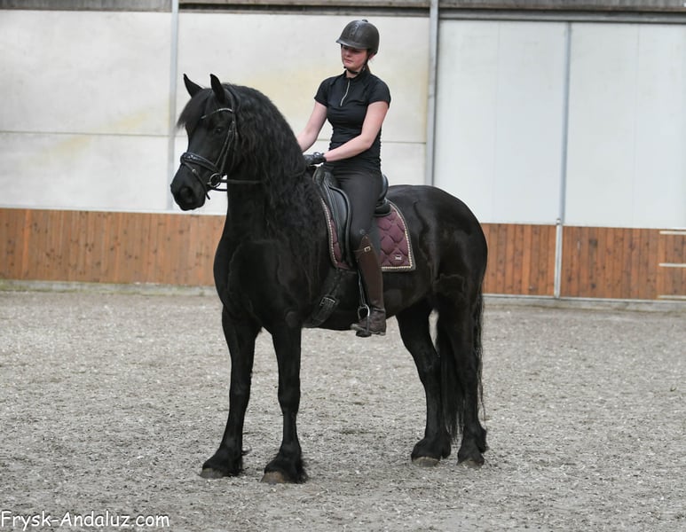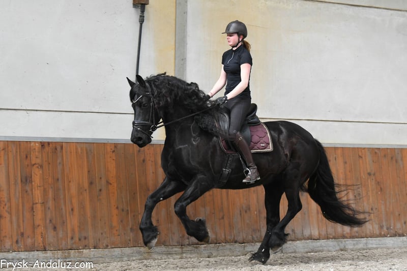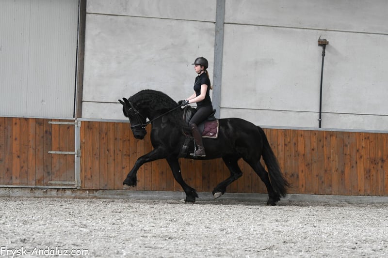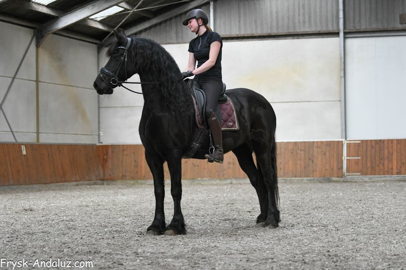 Jibbeltje ist kein Jibbeltje, sondern eher ein Jibbel! Eine wunderschöne, kräftige, noch barocke Friesenstute. Eine Stute mit dem Erscheinungsbild eines Hengstes, einer beeindruckenden Halslinie, breiter Brust und einem hübschen Kopf mit großen Augen. Jibbeltje ist somit ein echtes Pferd für Liebhaber des barocken Friesens. Ihr Vater ist der bekannte Grand-Prix-Hengst Elias 494, und ihre Bewegungen hat sie sich nicht von einem Fremden abgeschaut. Sie bewegt sich großzügig und mit viel Vorbeintechnik. Jibbeltje wurde beim Züchter geboren und aufgezogen, doch aufgrund gesundheitlicher Probleme bekamen wir die Gelegenheit, sie für unsere Kunden zu testen. Und das hat sie definitiv verdient: Sie ist eine sehr liebe, freundliche Stute, die Aufmerksamkeit liebt. Sie ist fein geritten und brav, zwar vorwärts gerichtet und arbeitswillig, aber ihr Herz ist von Gold. Bei ihren Züchtern hat sie auch gelegentlich Ausritte unternommen. Für diese wunderschöne Dame suchen wir ein Fünf-Sterne-Zuhause, denn sie möchte als Familienmitglied gesehen werden und liebevoll verwöhnt werden. Jibbeltje kann sicherlich ein Familienpferd sein, ein Pferd für die ganze Familie, allerdings für Menschen mit etwas Erfahrung. Wir haben den Züchtern versprochen, sie nicht an unerfahrene oder Anfängerreiter zu verkaufen, und daran werden wir uns auch strikt halten. Sie kann etwas sensibel sein, weshalb sie nicht für Anfänger geeignet ist. Sind Sie auf der Suche nach einer sehr schönen, barocken und lieben Stute? Dann könnte Jibbeltje das richtige Pferd für Sie sein!