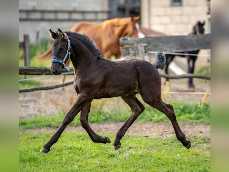 À vendre, jument frisonne à sevrer en novembre. Documents KFPS, père Jehannes 484 x Beart 411. La jument donne les jambes, elle est attachée et conduite en longe. N'hésitez pas à me contacter.