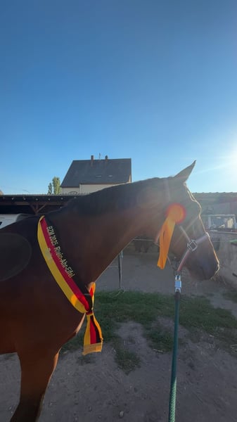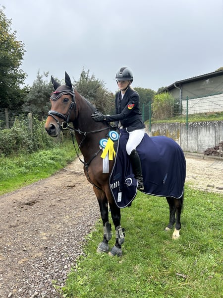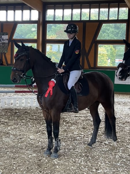 Zum Verkauf steht unser 15-jähriger Springwallach Flying Carlsson. Im Umgang sowie beim Reiten zeigt er sich jederzeit unkompliziert und angenehm zu reiten. Calle ist ein absolut zuverlässiges Lehrpferd, das seinem Reiter im Parcours viel Sicherheit gibt. Der Wallach ist erfahren im Parcours, kennt Turnieratmosphäre und ist dabei stets ruhig und konzentriert. Er ist bis M-Springen platziert und ein echter Schleifensammler, vor allem in den Klassen E–L. Auch im Gelände ist Calle brav und verlässlich, sowohl alleine als auch in der Gruppe. Ideal für Reiter, die ein erfahrenes, verlässliches Pferd für den Springsport suchen. Platz vor Preis.