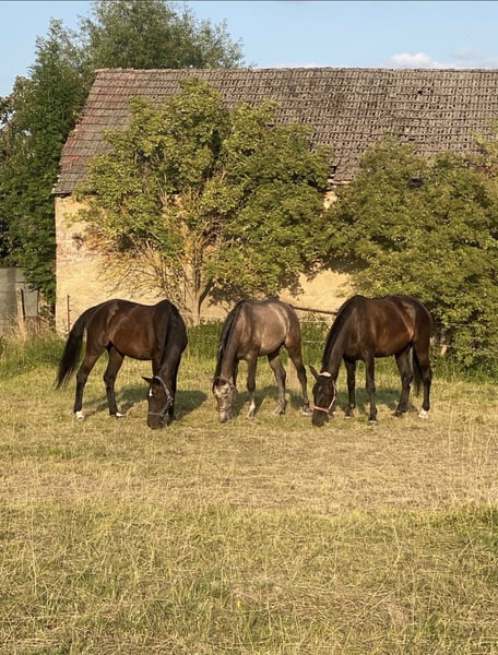 Dringlich.. und nicht nur merken! Zum Verkauf steht eine 19 Jährige Old stute mit guter Abstammung. Zubehör wie Sattel ect können mit erworben werden. -Vorne weg sie ist Kinder u Tierlieb- Concita 5 ist 1,70 groß, ging im Sport L-M (springen) denoch auch Dressurbetont aufgrund der Abstammung bei mir nur Freizeit.. Vom Vorbesitzer kam sie aus schlechter Haltung (Tiermessi) und befindet sich im Wiederaufbau. Sie ist gesund und munter trotz ihres Alters legt sie immer noch ein gutes Bild zurück benötigt keine Medikamente oder ähnliches. Sie ist reitbar trotz ihr alter sollte das reiten nicht jeden Tag an erster stelle stehen. Sie hatte bei den Vorbesitzern wahrscheinlich einen sehnenschaden gehabt dieser ist vollständig ausgeheilt. Sie ist leichtrittig und sofort bei Annahme der zügel da lässt sich auch von kleinen reiten aber trotzdem benötigt sie grenzen und eine Erfahrene Hand. Sie ist rangniedrig und sehr sozial wenn sie einen freund gefunden hat kann sie sich schwer trennen von ihm. Ich kam gut mit ihr zurecht da sie allerdings auch anderes kann und ihr stutenverhalten auch nutzen kann gebe ich sie nur in erfahrene Hände ab. Spritzen vom Tierarzt mag sie nicht aber wenn man das weis kann man sie Händeln. Im stall fängt sie bei Stress öfters an mit coppen (Aufsetzer) hatte bisher aber nie Probleme gemacht daher wünsche ich mir das sie nur im Winter nachts reinkommt da sie es nur im stall macht. Hufschmied und Hänger fahren sind kein Problem. Sie ist geimpft und frisch entwurmt die zähne wurden mitte 25 gemacht. Platz vor preis Ich wünsche mir nur einen guten platz für sie. Gegen Aufpreis kann sie auch gebracht werden :) Bitte meldet euch bei Interesse.