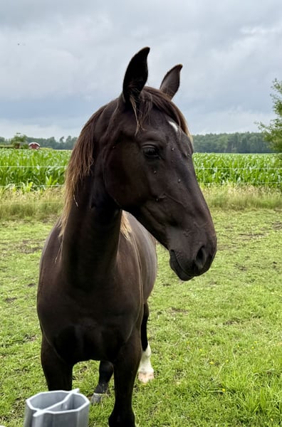 Te koop is een prachtige, eenjarige Alt-Oldenburger merrie in de gewilde zwartkleur – een echte blikvanger met veel uitstraling en toekomstpotentieel! Afstamming Vader » Prijzenhengst Dedo / De Oude Oldenburger / Lord II Moeder » Uncja / Basza / Deport Met deze bewezen en prestatiegerichte afstamming heeft de jonge dame de beste voorwaarden voor sport en recreatie. Profiel: ▪ Geboren: mei 2024 ▪ Geslacht: merrie ▪ Kleur: zwart ▪ Ras: Alt-Oldenburger ▪ Grootte: zal groot worden (geschatte eindhoogte ca. 170–175 cm) Beschrijving: Deze jonge dame overtuigt nu al met een geweldige aanwezigheid en een duidelijk, expressief type. Ze valt op door een correct fundament, krachtige lichaamsbouw en ruime, natuurlijke basisgangen – ideaal voor dressuur of als hoogwaardige recreatiepartner. Ze is al halstergewend en toont zich in het dagelijks omgaan als lief, braaf en zeer mensgericht. Ze is vertrouwensvol en rustig, terwijl ze leeftijdsgebonden nieuwsgierig is – kortom, een echte schat! Locatie: Neerstedt Alleen in goede, ondersteunende handen beschikbaar. Geïnteresseerd? Voor meer informatie, foto's of een persoonlijke kennismaking horen we graag van je via een bericht of een telefoontje naar: Braaklander Hof, Tel: 01522 8008206 Investeer vandaag in jouw paard van morgen – met deze jonge zwartmerrie staat je een stralende toekomst te wachten!