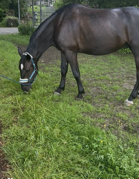 Zum Verkauf steht Farao, ein eleganter und großrahmiger Rappwallach mit Traumcharakter. Er überzeugt durch seine edle Erscheinung, seine Ausgeglichenheit und sein freundliches Wesen. Farao wird ausschließlich in beste, liebevolle Hände abgegeben, da der Reitsport in unserer Familie schweren Herzens aufgegeben wird. Dieser wunderschöne Wallach vereint Leistungsbereitschaft, Nervenstärke und Herzensgüte. Er ist brav im Gelände, menschenbezogen im Umgang und motiviert bei der Arbeit unter dem Sattel. Ob Freizeitpferd, Familienpferd oder Allrounder für Dressur und Springen – Farao macht in jeder Situation eine gute Figur. ⸻ 🏇 Ausbildung & Eignung Farao ist altersgerecht ausgebildet und zeigt viel Talent für Dressur und Springen. Auch im Gelände zeigt er sich stets ruhig, gelassen und unerschrocken – sowohl alleine als auch in der Gruppe. Seine Gelassenheitsprüfung hat er mit Bravour bestanden, was seine Zuverlässigkeit und mentale Stärke eindrucksvoll unterstreicht. Dank seines feinen Charakters eignet er sich sowohl für erfahrene Reiter als auch für Jugendliche und Wiedereinsteiger. ⸻ 💚 Gesundheit & Pflege Farao ist komplett gesund und wurde regelmäßig tierärztlich und physiotherapeutisch betreut: • Röntgenbilder (Beine & Hufe) aus 2021 vorhanden und unauffällig • geimpft • Zahnarzt- & Physiotherapie-Termine in festen Abständen • Hufschmied alle 8 Wochen • Regelmäßig entwurmt Er kennt Box, Paddock und Offenstall und passt sich schnell an neue Haltungsformen an. Auch eine 24/7-Weidehaltung ist möglich, wenn er entsprechend vorbereitet wird. ⸻ 🕊 Charakter Farao ist ein Pferd mit Seele – ruhig, ehrlich, ausgeglichen und sehr menschenbezogen. Er schenkt Vertrauen, lässt sich gerne beschäftigen und ist im täglichen Umgang absolut unkompliziert. Meine 17-jährige Tochter reitet ihn regelmäßig, aber auch meine 12-jährige Tochter ist ihn bereits geritten – das zeigt, wie brav und verlässlich er ist. Ein echter Partner fürs Leben, der sowohl Freude bereitet als auch Ruhe ausstrahlt – ein Pferd, das Herz und Verstand vereint. Bilder, Videos sowie weitere Informationen sende ich bei ernsthaftem Interesse gerne zu. Farao wird nur in beste, fördernde Hände abgegeben – uns ist wichtig, dass er einen Platz findet, wo er geliebt, gefördert und wertgeschätzt wird.