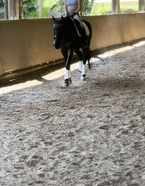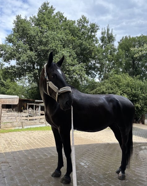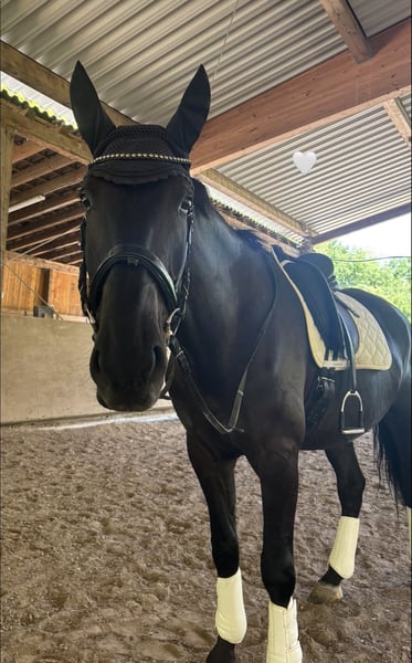 For sale is a 6-year-old gelding, approximately 173 cm tall, of Furioso lineage. He is being offered only to the best of homes, as the sport of riding is being given up. This beautiful black horse impresses not only with his elegant appearance but also with his dream character. He is motivated, eager to learn, and brings as much joy in daily handling as he does under saddle. Trained according to his age, he has potential for both jumping and dressage and is also excellent as a versatile all-rounder. Whether for leisure or as a family horse – he is adaptable and always shows himself to be well-behaved and balanced. He has already passed a calmness test with flying colors. I am happy to send pictures, videos, and further information upon request.