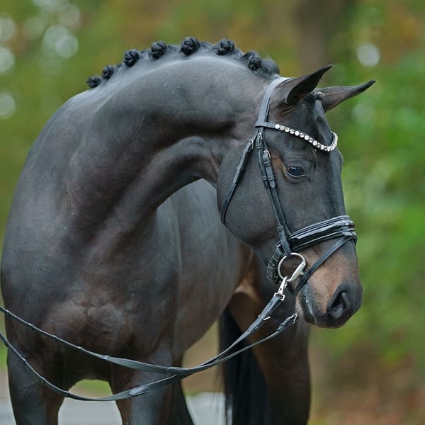 This likeable young stallion impressed on the occasion of the licensing with his modern appearance, in which the mechanics in the foreleg in particular reveal him to be a son of his sire Glamourdale, who is on everyone's lips as Charlott Fry's World Champion and Olympic horse. The pedigree is perfectly secured genetically via the Oldenburg stallions Sandro Hit and Rubinstein I. Stud fee: service fee: 350 €, pregnancy rate: 650 € (FS) Prices plus 7 % VAT.