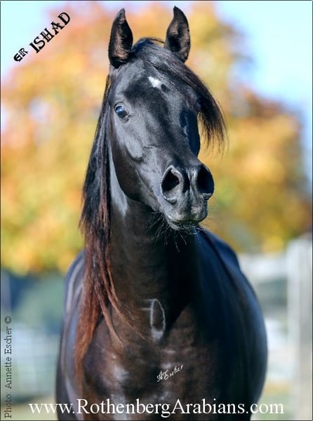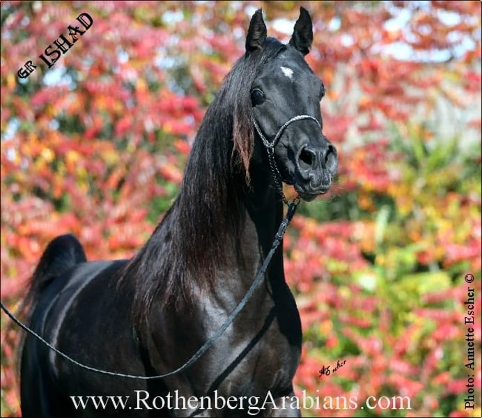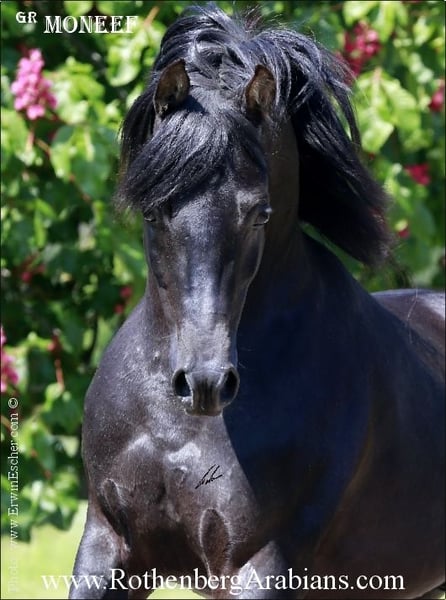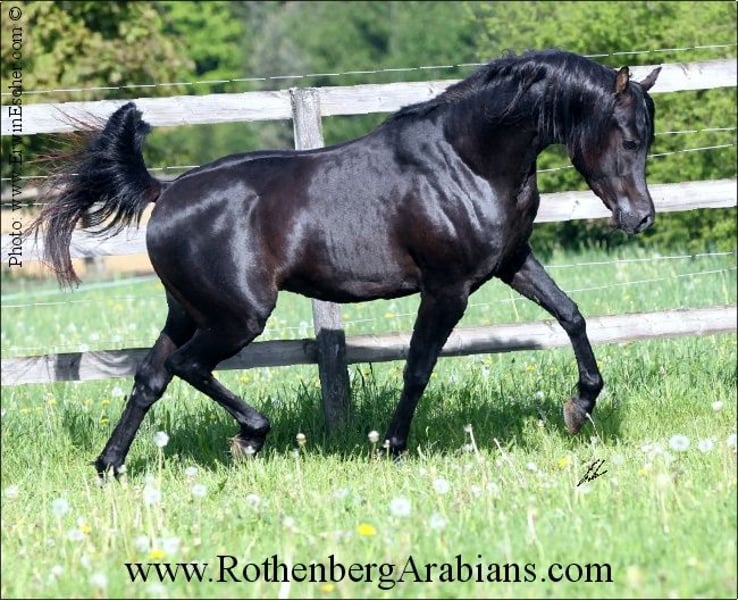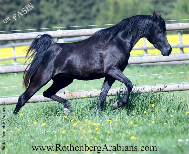 Homozygous black Straight Egyptian GOLD PREMIUM stallion GR FASIN by black gold-premium-stallion Maheeb! Black without any white markings! SCID / CA / LFS clear! Exotic type, fantastic body, gorgeous and super showy movements and most important a just wonderful cool character! Offspring in Europe and Middle East! From time to time shipped semen in best quality available, life-foal-guarantee (if not pregnant breeding for free the following year, change of stallion mostly possible upon request) 13 additional Straight Egyptian stallions - most of them black, several homozygous! Some of them standing outside for breeding, some have shipped fresh / frozen semen avaialble! World-famous stallions, several gold-premium stallions and/or winner of stallion-licensing / Multi-Champions / some with winning offspring worldwide at show and endurance! Black & grey, some homozygous! All stallions are SCID & CA free, Breeding-fees from Euro 700,- up (depends the stallion and pedigree of the mare) - detailed breeding-conditions on request! Always offspring and breeding-stock available for purchase! Please visit us at Instagram: @RothenbergArabianStud