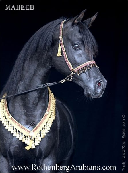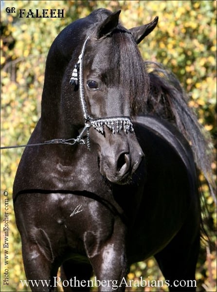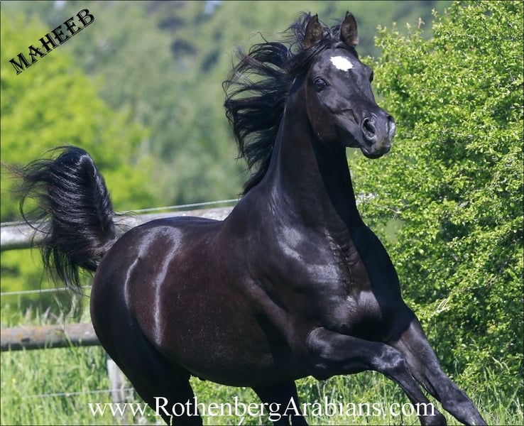 GOLDPRÄMIERTER reinerbiger (homozygoter) rein ägyptischer Vollblutaraber-Rapphengst GR FASIN vom goldprämierten Rapphengst Maheeb! Rappe ohne Abzeichen! Fantastischer exotischer Typ, super Gebäude & Bewegungen, wundervoller cooler Charakter und sein bewährtes Spitzenpedigree zeichnen ihn aus! SCID / CA / LFS frei! Rappvererber! Nachzucht bisher in Europa und im Nahen Osten! Zeitweise Samenversand in bester Qualität, Lebendfohlengarantie (Nachbedeckung im Folgejahr, Hengstwechsel nach Absprache möglich). Insgesamt stehen Ihnen 15 rein ägyptische Hengste zur Verfügung - teils bei uns im Gestüt, teils auswärts auf Deckstation bzw. über Frischsamenversand und zum Teil auch mittels Gefriersamen - die meisten Rappen, etliche davon reinerbig, etliche Goldprämiert ! Weltbekannte Spitzenhengste teils gold-prämiert / Körungssieger, teils mit großen Schauerfolgen sowie erfolgreicher Nachzucht in der ganzen Welt (Schau & Distanz)! Rappen & Schimmel! Alle Hengste sind SCID & CA frei, Decktaxen ab Euro 700,- (je nach Hengst und Rasse / Abstammung der Stute) - genaue Deckbedingungen auf Anfrage. Außerdem haben wir sowohl aus unserer eigenen, weltweit erfolgreichen Zucht sowie von Deckkunden immer wieder Fohlen, Jung- und auch Zuchtpferde anzubieten - mehr Infos auf unserer Homepage www.Gestuet-Rothenberg.de bzw. alle aktuellen Verkaufspferde gerne auf Nachfrage. Nähere Infos gerne telefonisch unter 0049 / 0 90 91 / 37 07 oder per e-mail (bitte Anfragen per e-mail NUR mit vollständigem Namen und Adresse - danke!). Besuchen Sie uns auch auf Instagram: @RothenbergArabianStud