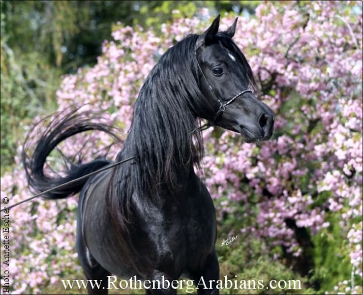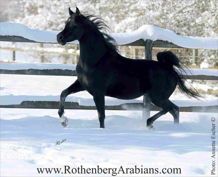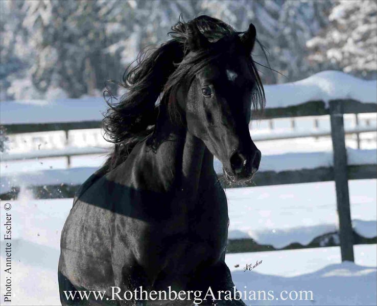 Homozygous black Straight Egyptian Gold Premium stallion by black Gold Premium-stallion GR Nashad (exp. Kuwait, by world-famous black show-winner GR Faleeh exp. Kuwait) out of a daughter of Multi-Champion Classic Shadwan! Dahman Shahwan! Exotic classic in type, fantastic body, gorgeous and super showy movements and most important a just wonderful character! Offspring with breeders on 4 continents! From time to time shipped semen in best quality available, life-foal-guarantee (if not pregnant breeding for free the following year, change of stallion mostly possible upon request) 13 additional Straight Egyptian stallions - most of them black, several homozygous! Some of them standing outside for breeding, some have shipped fresh / frozen semen avaialble! World-famous stallions, several gold-premium stallions and/or winner of stallion-licensing / some big show-success / some with winning offspring worldwide! Black & grey, some homozygous! Are stallions are SCID & CA free, Breeding-fees from Euro 700,- up (depends the stallion and pedigree of the mare) - detailed breeding-conditions on request! Always offspring and breeding-stock available for purchase! Please visit us at Instagram: RothenbergArabianStud
