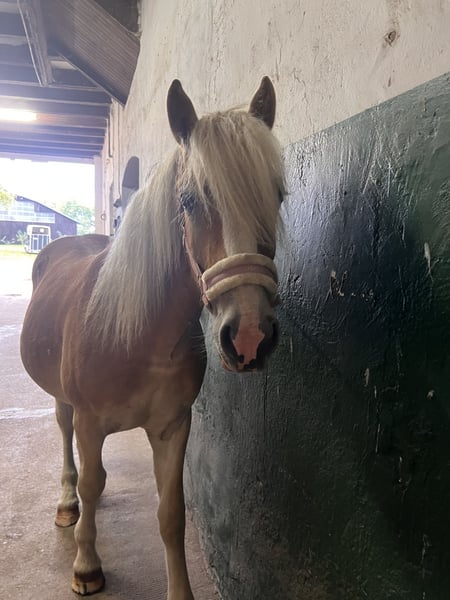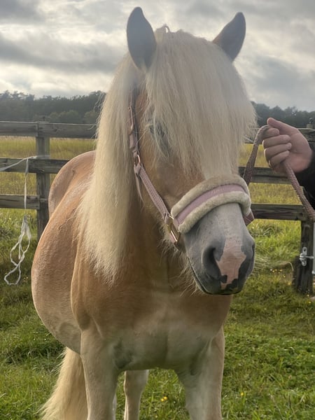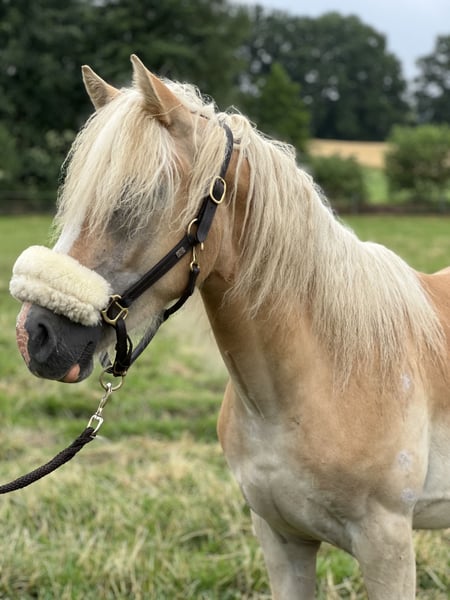 Schweren Herzens suche ich für meinen jungen Haflinger-Hengst ein liebevolles Zuhause. Er wird im Februar 2 Jahre alt und wird voraussichtlich mindestens 150 cm, eventuell größer. Er stammt vom Bundessieger Niclas Boy, einem Hengst, der durch seine überragende Leistungsprüfung und Titel wie Europachampion der jungen Haflinger im Springen überzeugt. Seine Nachzucht ist für Leistungsbereitschaft, schöne Bewegungen und Charakterstärke bekannt – Eigenschaften, die mein Hengst definitiv mitbekommen hat. Wesen & Umgang: Er ist unglaublich lieb, sanft und sehr menschenbezogen. Er lässt sich problemlos von jedem führen, liebt Aufmerksamkeit und zeigt sich in allen Situationen kooperativ. Putzen, Sprühen, Anbinden, Verladen oder das Auflegen der Decke – alles klappt ohne Probleme. Er wird auch nicht extrem kribbelig, wenn Stuten in der Nähe sind und man kann ihn problemlos von der Weide holen, ohne das er nach seinen Kumpels schreit. Einfach ein Engel in jeder Situation. Überzeugt euch gerne selber von seiner Art! Bewegung & Potenzial: Er besitzt 3 sehr schöne, elastische Gänge und bringt viel Talent für Freizeit und Sport mit. Mit seiner Abstammung und seinem Exterieur könnte er später groß rauskommen. Gesundheit: Dieses Jahr hatte er einmal einen Reheschub. Unter dem richtigen Management ist das sehr gut händelbar und seitdem komplett unauffällig. Transparenz ist mir wichtig. Ansonsten ist er gesund und ich hatte keine weiteren Probleme. Geimpft ist er und er wird regelmäßig beim Schmied vorgestellt. Warum ich ihn abgebe: Mir fällt die Entscheidung unfassbar schwer. Da ich jedoch bereits ein chronisch krankes Pferd habe, kann ich das Risiko nicht tragen, irgendwann beiden nicht mehr gerecht zu werden. Er verdient ein Zuhause, in dem er an erster Stelle steht. Ich wünsche mir Menschen, die seine Liebenswürdigkeit zu schätzen wissen und ihm ein Zuhause bieten, in dem er als Familienmitglied oder zukünftiger Sportpartner aufblühen kann. Videos vom laufen lassen können gerne versendet werden, am Sonntag bin ich auch bei ihm und kann dann noch aktuelle Bilder/ Videos verschicken. Bei Interesse freue ich mich über eine Nachricht. Platz vor Preis!!