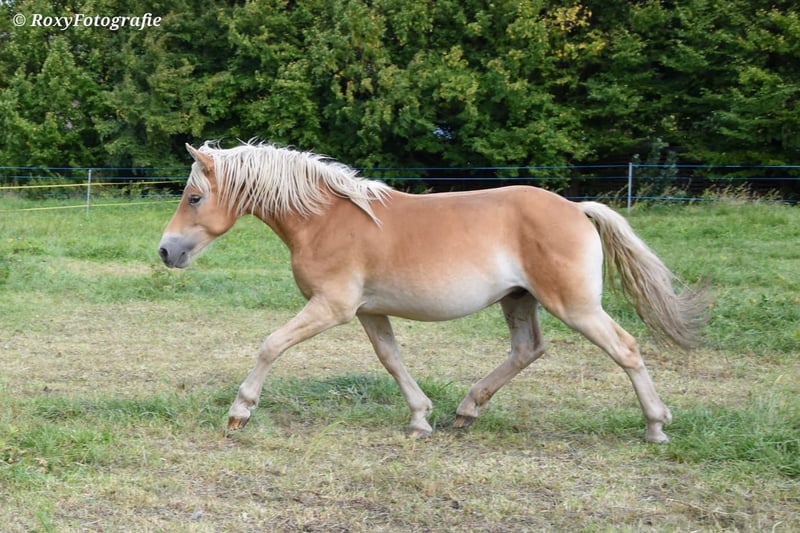 Verkaufe bei passendem Platz einen tollen Haflinger Jährlingshengst. Er stammt ab vom Hengst Neuglanz, der Sieger seiner Leistungsprüfung mit 8,54! wurde. Seine Mutter ist Staatsprämienstute, PrSt**, leistungsgeprüft und war zur Bundesschau 1d prämiert. Er wurde im Juni 2024 geboren, konnte seine Fohlenschau gewinnen und sich zum Championat im Moritzburg an vierter Stelle platzieren. Die Mutterstute ist super zuverlässig, nervenstark, mit tollen Bewegungen ausgestattet und verfügt über ein gutes und kräftiges Fundament sowie sehr raumgreifende Grundgangarten. Sie wird geritten (geht E/A auf dem Turnier), läuft zur Fuchsjagd mit und ist ein und zweispännig gefahren. Sie ist das Pferd für alle Fälle, macht alles mit, geht bei Martinsumzügen vorweg und ist einfach nervenstark und gleichzeitig sehr arbeitswillig. In dieser ersten Saison im Fahrsport bei jedem Start platziert gewesen (A-Niveau). Die letzten 4 Bilder zeigen die Mutter. Novelio zeigt bereits jetzt das sehr ausgeglichene Temperament seiner Mutter, kann sich toll bewegen und ist modern aber gleichzeitig noch kräftig im Fundament, sein Stockmaß wird sicher um die 1,50m liegen (eher größer). Mutter und Schwester (3 jährig aktuell bereits 1,50m groß) können vor Ort besichtigt werden. Er beherrscht das Fohlen-ABC und hat den Sommer in einer altersgemischten Hengstherde verbracht und ist nun mit der Herde ins Winterquartier gezogen. Er ist geimpft, entwurmt, steht artig beim Hufschmied und kennt das Anhänger fahren. Er bringt alle Voraussetzungen mit, um mal ein ganz tolles Reit- und Fahrpferd sowohl im Freizeitbereich als auch im turniersportlichen Bereich zu werden. Auch als späteres Kinderpferd kann ich ihn mir aufgrund des angenehmen Temperaments sehr gut vorstellen. Eine Besichtigung ist nach Absprache jederzeit möglich. Kann auch hier noch kastriert werden. Er könnte auch zur Aufzucht weiterhin hier stehen bleiben, auch anreiten oder einfahren wäre dann später hier möglich. Ggf. wäre auch ein Transport ins neue Zuhause im Umkreis möglich.
