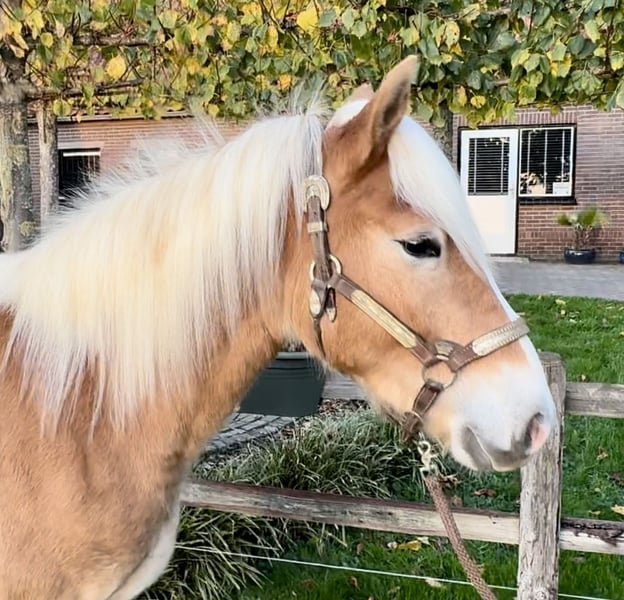 Cute Haflinger stallion almost 2 years old! Cees was born in 2024. He currently measures 139-140 cm, so he will develop into a nice size! A sweet pony in handling, both in the stable and with other horses!
