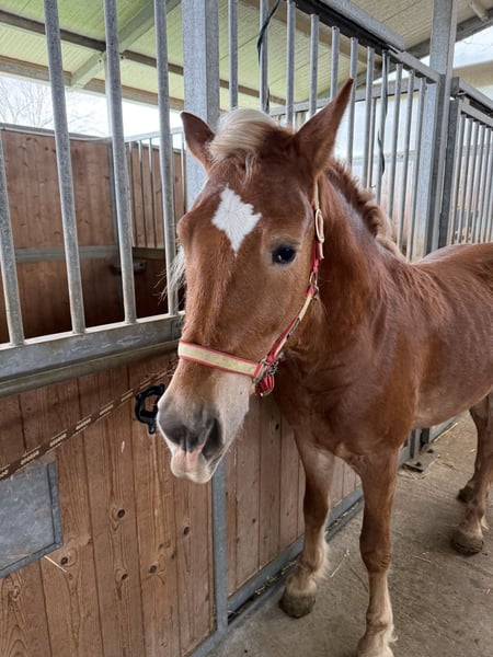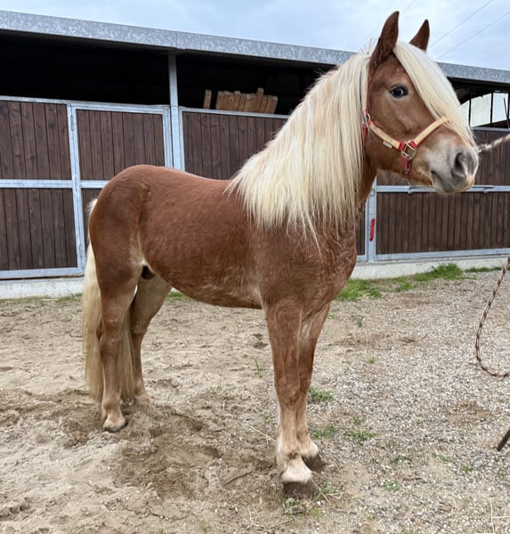 Stupendo cavallo intero di 4 anni. Carattere equilibrato, domato ma con necessità di essere ripreso. Ottima genealogia sia da parte del padre che della madre, proveniente da nomi come Stornello Toscano, Storm, Steinadler, Madonna, Zendalino. Nomi che hanno segnato la storia della razza Halfinger. Cavallo dal manto stupendo e dal carattere docile ma con l'impulsività di un giovane stallone. Si allegano le foto ma non rendono come dal vivo.