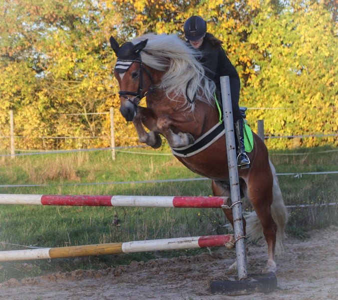 ❗️Nur noch bis zum 01.11 als Hengst abzugeben ❗️ Kann auf Wunsch auch früher gelegt werden . Geb. 2018 • Stockmaß ca. 1,48 m • PSSM N/N • 0,00 % Fremdblut • gekört & leistungsgeprüft . 🌟 STAKARINO – Qualität, Charakter & Charme in einem außergewöhnlichen Haflingerhengst 🌟 . Der 2018 geborene Haflingerhengst Stakarino vereint alles, was man sich von einem modernen Vertreter seiner Rasse wünscht: Ausdruck, Leistungsbereitschaft und einen Charakter, wie man ihn sich nur wünschen kann. Mit seinem Stockmaß von ca. 1,48 m, seinem harmonischen Körperbau und dem eindrucksvollen Behang ist er ein echter Blickfang – elegant, charmant und mit natürlicher Präsenz ausgestattet. . Stakarino ist leistungsgeprüft und zeigte sich in der Hengstleistungsprüfung mit überdurchschnittlicher Rittigkeit, hervorragender Zuwilligkeit und ehrlicher Leistungsbereitschaft. Er überzeugt mit ausgeglichenem Temperament, klarer Einstellung zur Arbeit und einer konstant positiven Arbeitshaltung – ob unter dem Sattel oder im Geschirr. . Im täglichen Training zeigt er sich stets fleißig, aufmerksam und verlässlich. Stakarino ist kein triebiges Pferd, sondern arbeitet willig mit und begeistert durch seine feine Anlehnung und angenehme Rittigkeit. Er zieht gut zum Sprung, springt mit Übersicht und Spaß an der Aufgabe und lässt sich dabei auch von unerfahrenen Reitern sicher und entspannt reiten. Aktuell auf A-Niveau gefestigt, zeigt er in Dressur und Springen gleichermaßen Talent und Freude an der Arbeit. . Auch im Gelände zeigt Stakarino seine vorbildliche Nervenstärke. Er ist aufmerksam, aber nie schreckhaft. Reitplatz und Reithalle kennt er selbstverständlich – er präsentiert sich überall ausgeglichen, motiviert und konzentriert. . Im Umgang ist Stakarino ein echter Schatz: absolut artig, freundlich und respektvoll. Selbst als Hengst zeigt er sich außergewöhnlich brav und unkompliziert, stande auch schon Zaun an Zaun mit Stuten und bleibt stets gelassen. Auf Wunsch kann er selbstverständlich auch gelegt werden. . Gesundheitlich ist er in bestem Zustand – PSSM N/N getestet, regelmäßig geimpft und entwurmt, rundum gepflegt und mit bestem Sozialverhalten aufgewachsen. . ✨ Stakarino – ein Haflinger mit Seltenheitswert: wunderschön, leistungsbereit, charakterstark und ehrlich. Ein Pferd, das sowohl im Freizeit- als auch im Sportbereich überzeugt und seinem Reiter jeden Tag Freude bereitet. . . 💰 Probereiten nach Terminvereinbarung – 30 €, wird beim Kauf verrechnet. ✉️ Bei ernsthaftem Interesse freuen wir uns über Anfragen und geben gern weitere Informationen, Bilder und Videos.