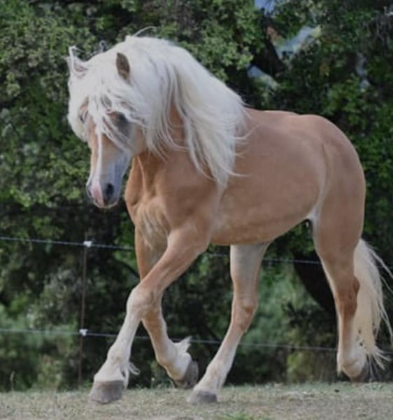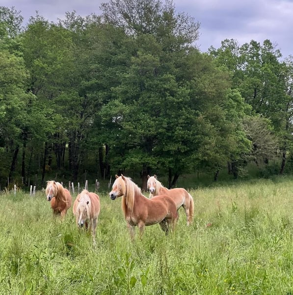 Velours Nordic is een Haflinger hengst, geboren in 2009, met een schofthoogte van 1,52 m. Hij is afkomstig uit uitstekende bloedlijnen: vader: Nordan I en moeder: Nikita Majax (dochter van Ajax du Tirol). Velours Nordic werd goedgekeurd voor de publieke dekking in 2012 met 35 punten en is zeer erkend in Frankrijk binnen de fokkerij. Hij is getest n/n PSSM1, wat betekent dat hij vrij is van de mutatie en deze niet kan doorgeven aan nakomelingen – een groot pluspunt voor fokkers. Velours Nordic werkt zowel in vrijheid als aan de hand en heeft onlangs een zeer succesvol dekseizoen gehad; alle merries die hij dit jaar heeft gedekt zijn drachtig. Hij leeft hele jaar buiten in een kudde op onze boerderij, in een rustige en gezonde omgeving. Afhankelijk van de verkoopprijs kunnen wij het transport naar Nederland organiseren, aangezien hij momenteel in het Zuidwesten van Frankrijk woont, in het departement Lot.
