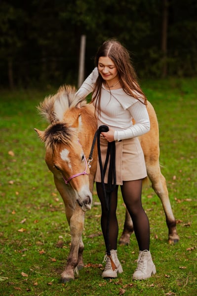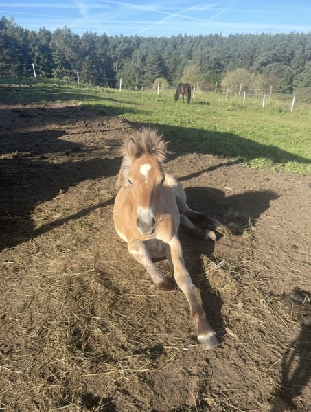 Hallo, Ich verkaufe meinen Hengstenfohlen Sky, der am 18.04.25 geboren ist. Sky‘s Vater ist unbekannt, aber auf jeden Fall war dieser ein Fjordpferd. Seine Mutter ist eine Haflingerstute (siehe Bilder). Ungefähr wird der Hengst +/- 150cm groß sein. Sky kennt den Tierarzt, wurde geimpft, entwurmt und auch der Hufschmied ist ihm nicht unbekannt. Einen Chip besitzt er auch. Zudem befindet sich Sky im stetigem Training. Er kennt Wälder, Hunde und landwirtschaftliche Geräte. Außerdem kann er die Bein heben, sich führen lassen und in den Anhänger reingehen. Er lässt sich überall berühren und bemüht sich die Aufmerksamkeit von Menschen zu bekommen. Zurzeit steht er in Polen, genauer gesagt in Bińcze (Czarne). Ich verkaufe Sky nur an gute Hände. Auch ist mir die Haltung für ihn sehr wichtig, denn er steht gerade mit 6 Pferden auf 3 Hektar Fläche und ich wünsche mir, dass er im neuen zu Hause auch viel Platz hat. Bitte nur konkrete Anfragen.