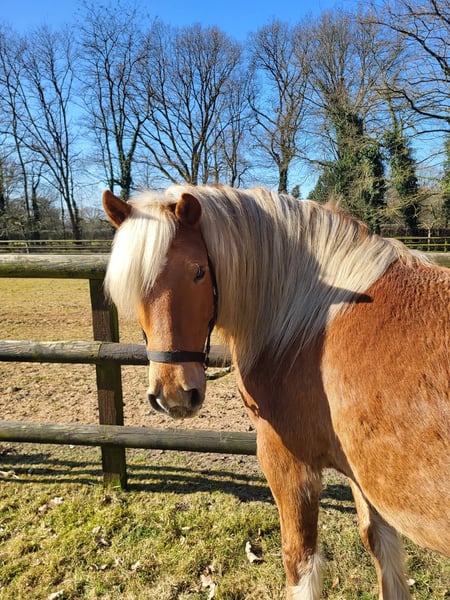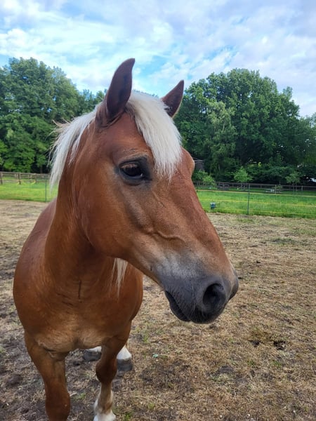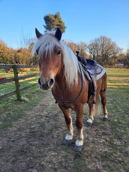 Met pijn in mijn hart bied ik mijn Haflinger ruin Jores te koop aan, omdat wij helaas geen match meer zijn. Jores is een 10-jarige ruin van ongeveer 1.45 m hoog. Hij is een ouderwets type Haflinger, mogelijk met een vleugje trekpaard in zijn bloed (ingeschreven bij het ICS). Hij heeft een mooie donkere vacht en een krachtige, compacte bouw. Jores is een gevoelig en onzeker paard dat veel kan opkroppen en in spannende situaties snel in de “freeze-stand” kan gaan. Ik heb hem ruim een jaar geleden als groen, maar beleerd paard gekocht. In die periode is hij onder andere mee geweest naar het bos en dressuurmatig gereden. In het verleden heeft hij naar zeggen ook voor de koets gelopen. In april heb ik helaas een harde val van hem gemaakt (met blijvende schade aan mijn schouder), wat ons beiden mentaal een tik heeft gegeven. Ondanks dat is hij daarna nog onder het zadel geweest, maar hij bouwde daarbij veel spanning op. Daarom is hij vervolgens eerst volledig vanaf de grond opgepakt. Hij heeft als projectpaard gewerkt bij een student van de opleiding Natural Horsemanship. Hierbij is er gewerkt aan grondwerk, loswerken en lange lijnen. Het plan was om hem daarna weer rustig op te pakken onder het zadel, maar door mijn blessure en de onzekerheid die daarbij komt kijken, voel ik dat ik hem hierin niet meer kan geven wat hij nodig heeft (een zelfverzekerd persoon waar hij op kan bouwen). Hij voelt mijn spanning feilloos aan. Jores heeft daarnaast ook ervaring met het werken als handpaard; zowel als meelopend handpaard naast een rijdend paard als zelf onder het zadel met een handpaard erbij. Daarnaast heeft Jores meegedraaid in verschillende coachsessies. Opvallend is dat hij extraverte, dominante persoonlijkheden liever uit de weg gaat, maar juist toenadering zoekt tot de introverte en rustige mensen. Hij is eerlijk, zacht in contact en werkt graag als er iets te doen is, staat hij vooraan. Jores voelt zich op zijn best wanneer hij lekker in zijn vel zit (een paar kilootjes lichter) en zowel fysiek als mentaal wordt uitgedaagd. Hij heeft behoefte aan afwisseling en duidelijke begeleiding. De afgelopen tijd hebben we lichte vrijheidsdressuur opgepakt, wat hij zichtbaar leuk vindt om te doen. Hij denkt graag mee, pakt nieuwe oefeningen snel op en is erg leergierig. In de kudde gaat hij makkelijk samen met andere paarden. Hij loopt rustig de trailer op en gaat hier wekelijks mee het bos in aan de hand met een groep. Alleen op pad gaan gaat ook goed, mits de begeleider zelfverzekerd is. Ik zoek voor hem een zekere, rustige eigenaar. Rijden mag geen eerste doel zijn; vertrouwen, verbinding en duidelijkheid staan voorop. Vanuit daar kan uiteraard gekeken worden of het rijden in de toekomst weer passend is. Wat ik belangrijk vind: * Een stabiele, zelfverzekerde begeleider Ik gun hem een plek waar hij mag landen, verder mag groeien in vertrouwen en gewaardeerd wordt om wie hij is. Stuur gerust een privébericht voor meer informatie.