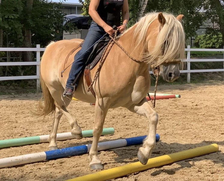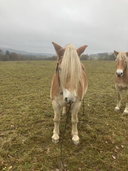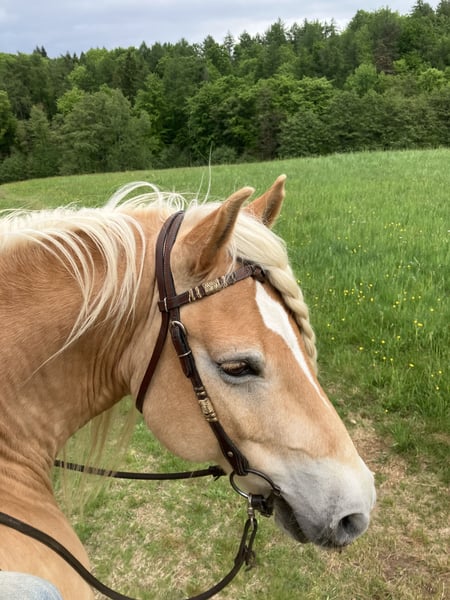 Lieber Interessent, schweren Herzens biete ich meinen bildschönen Haflingerwallach zum Verkauf an. Ich hoffe, auf diese Weise ein Zuhause für ihn zu finden, dass seinen Ansprüchen besser genügt als meins. Ich habe Akino mit einem 3/4 Jahr gekauft und er ist bei meinen älteren Haflinger-Wallachen aufgewachsen. Er hat eine solide Westerngrundausbildung mit Bosal genossen. Ich reite ihn aktuell mit Wassertrense und Vielseitigkeitssattel. Bei mir wohnt er 24/7 auf Weide bzw. befestigten Auslauf mit portioniertem Futter. Obwohl er mittlerweile aus dem Kindesalter entwachsen ist, genügt es ihm nicht 1-2x/Woche geritten zu werden. Mehr kann ich ihm zur Zeit leider nicht bieten. Wir gehen meist alleine ins Gelände. Hier ist er sehr umgänglich und leicht zu händeln. Angst hat er keine, aber unerschrocken würde ich ihn nicht nennen. Wir haben ebenfalls viel Freude an unseren klassisch-Dressur-Reitstunden. Akino apportiert gerne. Ich wünsche mir ein Zuhause bei jemanden, der ihn weiter fordert und fördert und der 5-7x/Woche mit ihm etwas machen möchte. er ist regelmäßig geimpft und entwurmt. Ich reite ihn barhuf und ggf. mit Hufschuhen. Beschlagen war er bisher noch nie. Akino ist ein gutmütiger Freizeit-Partner. Er ist sehr schlau, was bedeutet, er lernt nicht nur gewünschte Dinge sehr schnell. Er ist kein Anfänger-Pferd und kein Familienpferd. Eine Bezugsperson, die er nicht mit anderen Pferden teilen muss, käme ihm sicher gelegen. Wenn Du noch Fragen hast, melde Dich bitte. Viele Grüße!