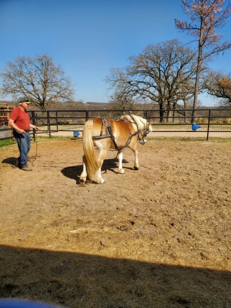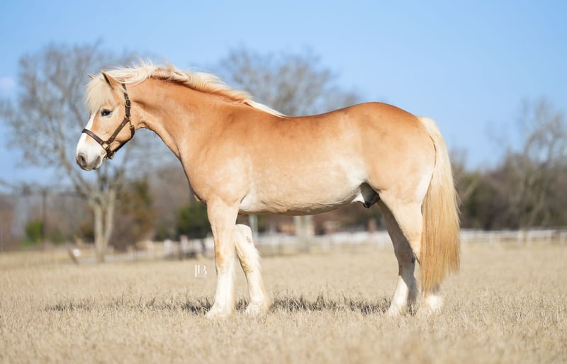 ℳ𝒶𝓇𝒸𝒽 ♦️𝐑𝐈𝐃𝐄𝐑'𝐒 𝐂𝐇𝐎𝐈𝐂𝐄♦️ Happening now thru MONDAY | MARCH 9th - Available EXCLUSIVELY on HorseBid's website! For more details and to register visit: www.Horsebid.com CONSIGNOR CONTACT: LB Equine Sales LLC 214-449-8028 LOCATION: Terrell, TX BREED: Haflinger REGISTERED: Yes REGISTERED NAME: An- Ultimatium YRF COLOR: Chestnut HEIGHT: 14.2 AGE: 13 GENDER: Gelding “Fabio” is just that — fabulous! A 13-year-old purebred registered Haflinger gelding with luxurious feathering and the sweetest disposition. There is something so striking about Fabs — we just can’t get enough of this cute guy. Fabio stands a sturdy 14.2H. He’s heavy-boned and strong as an ox in stature, yet kind and approachable. He has confidently packed larger husbands down the trail with ease and has proven himself a reliable trail mount year after year. He’s been with the same family for the past eight years and is now ready to bring his fun-loving character to your family farm. Honestly, Fabio should have a sign around his neck that says “Will Work for Cookies,” because this boy loves his treats! Warning: you may find yourself wanting to spend more time with Fabio in the barn, ring, and out on the trail than with your own husband. Fabio is happy-go-lucky, jolly, and just the right amount of goofy. If you’re looking for a friendly, charismatic, and gentle gelding — Fabio is your man. He’ll play with lead ropes, toss around balls, and splash happily in the water. He isn’t afraid of cows or wildlife and has frequently been used on a cattle ranch to check fences, sort cattle, and move pastures. He crosses water, navigates bridges, and steps into ravines confidently. He’s a total puppy dog on the ground — easy to catch, clip, tie, load, and back out of the trailer. He stands quietly for mounting and is well-mannered for the farrier and vet. He was recently body-clipped (standing in the cross ties for three hours with no twitch!). Over the years, he has mainly been a trail horse and has tolerated all sorts of silly shenanigans — including the owner’s son shooting arrows off his back while he stood like a statue. Fabio has been started in driving by a professional teamster, though he is not yet finished to cart. He also spent several months under the guidance of Elliot Holtzman and Caitie Holtzman of Versatile Horsemanship to further refine him under saddle. He has smooth, quality movement suitable for progressing up the levels in dressage and is currently schooling First Level. He is proficient in leg-yields, lengthenings, stretching in his circles, and simple changes. He can be a bit lazy if allowed, but he will happily step up into the trot and canter when asked. I consider him perfectly in the middle, not a racecar but not a deadhead plug either. He has a fantastic “whoa” button and comes right back down off your seat. Ride him in a snaffle, halter, or bosal — he is soft, responsive, and willing. He would also transition beautifully into a therapy-type home and is suitable and safe for my older clientele. Whether it’s short hacks around the property or long adventures through forest and plains, Fabio is confident and steady wherever you point him. I wouldn’t hesitate to load him up and head to any preserve, park, or country trail — he’s sure-footed, quiet, and has an excellent brain. He has also recently been used for lessons with novice children, where he proved obedient, tolerant, kind, and gentle. He has always been 100% sound and is currently barefoot. He has no leg blemishes, no known health issues, and does not require special supplements or maintenance. His AHR papers and bill of sale are in order and ready for transfer at the time of sale. A current vet statement of soundness, dental float chart, Coggins, and up-to-date vaccine records are all on file and available for viewing at your convenience. Located in Terrell, TX — we are happy to help coordinate shipping to any location.