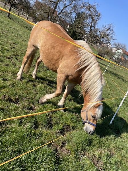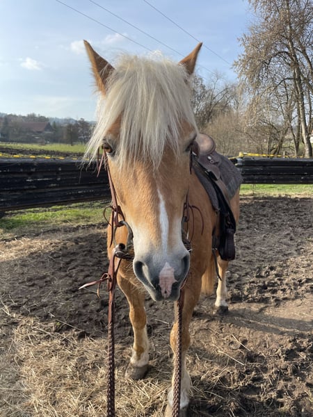 Schweren Herzens suche ich für meinen Haflinger Wallach (geb. 05/12) ein neues Zuhause. Er ist noch nicht lange bei mir, allerdings haben wir gemerkt, dass wir nicht ganz zueinander finden. Daher wünsche ich mir für ihn einen Menschen, der besser zu ihm passt und ihm gerecht wird. Er ist ein lieber, verspielter Kerl mit viel Persönlichkeit. Dabei testet er auch gerne mal seine Grenzen - man sollte sich also freundlich, aber konsequent durchsetzen können. Daher eher nicht für Anhänger geeignet. In den richtigen Händen ist er jedoch ein toller Partner. Er wurde sowohl Western als auch Englisch geritten, ist aktuell jedoch eine Weile nicht geritten worden. Er kennt Traktoren, Kühe, Hunde etc Stand in Offenstall- und Boxenhaltung. Verladen ist manchmal etwas problematisch, mit Ruhe aber machbar. Ich wünsche mir für ihn ein liebevolles, aber konsequentes Zuhause, wo er weiter gefördert wird und ankommen darf