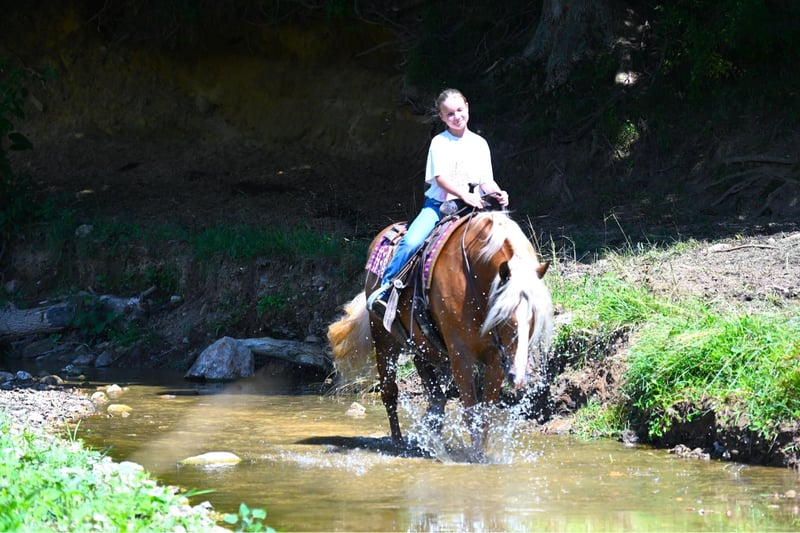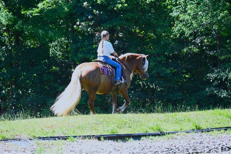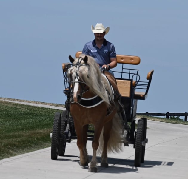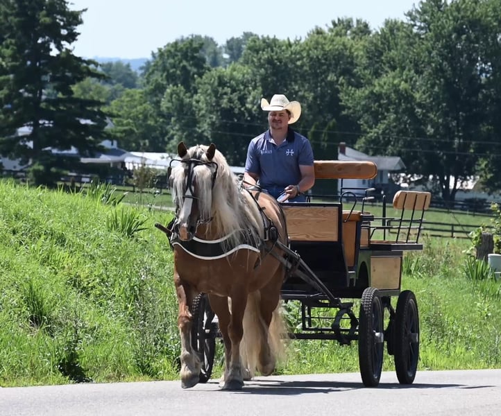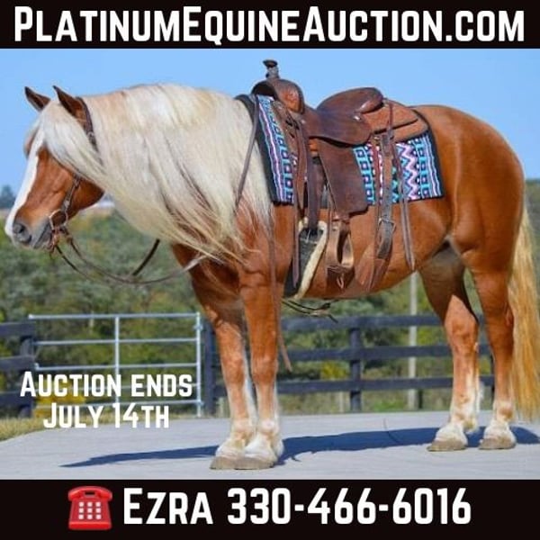 ONLINE AUCTION Place your bids at www.PlatinumEquineAuction.com Starting Bid $3500 Auction ends July 14th, 2024 Need a new saddle? Check out White Rock Saddles on our website or Facebook! I am very excited to be offering you one in a lifetime Haflinger… This is Maverick, a gorgeous 13 year old Halfinger gelding. His deep golden coat and striking dapples will get you noticed wherever you go for sure. He has a heart of gold that just wants to please and try his best to do what you ask. He has three very smooth, easy to ride gaits. In the arena, he will ride nicely off your leg pressure, knows his canter leads and has a smooth, steady trot. He would make a great hunt horse, or a great horse for someone to gain some confidence on. He has been on lots of trail rides; even overnight rides and rides that we call moonlight rides where you ride with a large group of people at night with only the moon as your source of light. He does great in traffic and will go out on a ride alone right from the farm with no issues. He is wearing shoes all around because of where we ride and he does wonderful for the farrier. He is a gentleman in the barn no matter if you have him in the cross ties or tied in his stall. He is easy to catch in the pasture and loves attention from anyone. You can ride him in your choice of tack as he has had English, western tack on and doesn’t mind even going bareback. He is a great horse that we would feel good with anyone getting on his back. If he is the horse that you have been looking for, please give Ezra Yoder of No Reins Performance Horses a call at 330-466-6016. ONLINE AUCTION Place your bids at www.PlatinumEquineAuction.com Starting Bid $3500 Auction ends July 14th, 2024 Need a new saddle? Check out White Rock Saddles on our website or Facebook!
