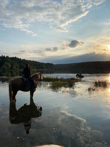 Lange habe ich erfolglos nach einer Möglichkeit gesucht, für meinen Haflinger-Wallach Beschäftigung und Aufmerksamkeit zu finden und bin nun schweren Herzens zu dem Entschluss gekommen, dass ein Besitzwechsel wohl der fairste Schritt für ihn wäre... Es handelt sich um einen 20jährigen, rittigen und willigen Junggebliebenen, 146 Stockmaß, mit Lust zu Arbeiten und Go im Gelände. Er ist äußerst verlässlich, wenn man Reiten kann, nutzt aber Unsicherheiten sofort aus, was ihn, unter anderem, NICHT anfängertauglich macht. Auch im Umgang braucht er souveräne Führung, Fairness, aber auch Vertrauen um zu vertrauen. Er ist ein super-bequemer Allrounder, der nach der ersten Überredung gerne auf dem Platz mitarbeitet, Freude am Horsemanship hat und sich erst Recht für lange Streifzüge ins Gelände begeistern lässt. Ein Schalebefund schränkt ihn keineswegs ein. Er lebt barhuf im Offenstall mit Hufschuhen vorne zum Ausreiten, ist regelmäßig entwurmt, geimpft und hat ein Date mit dem Zahnarzt im März. Ins Gelände geht er gebisslos mit Sidepull. Leider kommt er im Alltag viel zu kurz und die Aufmerksamkeit und Bewegung, die er zur Gesunderhaltung benötigt, kann ich ihm einfach nicht bieten. Wichtig wäre noch zu erwähnen, dass er von mir nicht alleine ins Gelände geritten werden kann (spazieren gehen funktioniert. Alleine reiten auf dem Reitplatz der Stallanlage auch!). Für Fragen und weitere Bilder und Videos stehe ich natürlich gerne zur Verfügung.