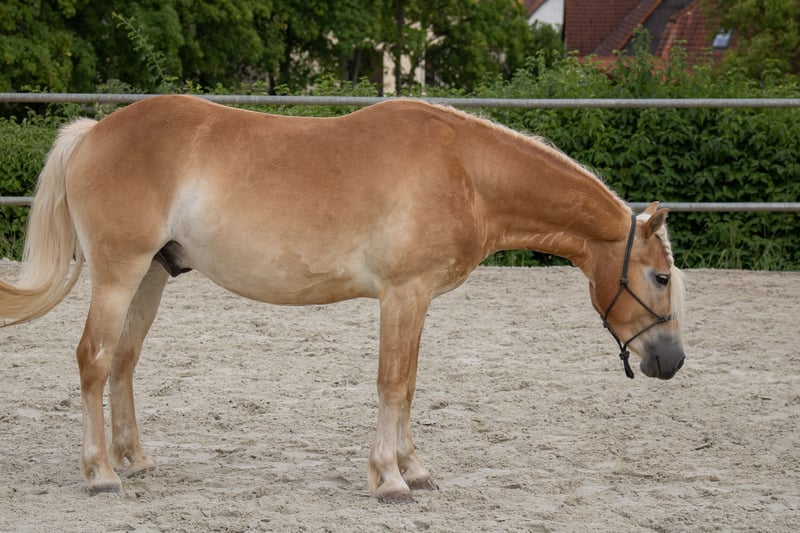 Hongre Edelbluthaflinger de 3 ans avec beaucoup de potentiel à vendre Sirius (*04.2022) Mère : Navinia M, Père : Starino I Taille actuelle : environ 1,40 m Niveau de formation : Sirius a été formé professionnellement en travail au sol et maîtrise cela très bien, de plus, il est déjà longé. Sirius est très gentil en manipulation, il est intrépide, connaît beaucoup de choses et est absolument clair d'esprit, ainsi que ferré et transporté sans problème. Pendant la journée, il se trouve dans un groupe de 5 hongres, la nuit en box. Sirius a été élevé ici et cherche maintenant une personne de référence stable qui l'encourage, le stimule et le forme davantage. Il peut également rester à la ferme. Ce n'est pas une vente urgente - il est vendu uniquement à de bonnes mains ! Pour plus de détails, n'hésitez pas à me contacter personnellement !