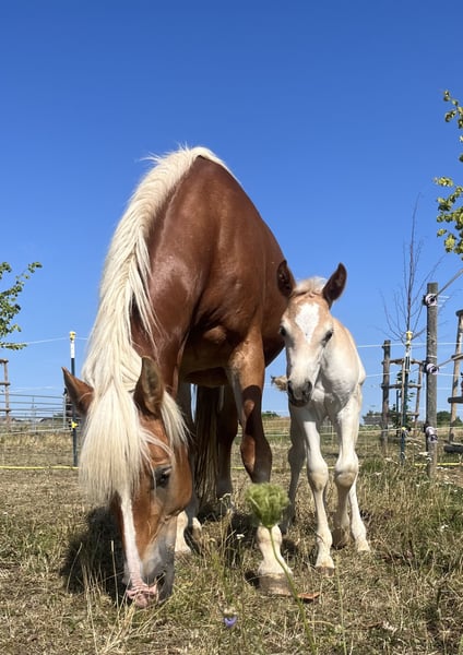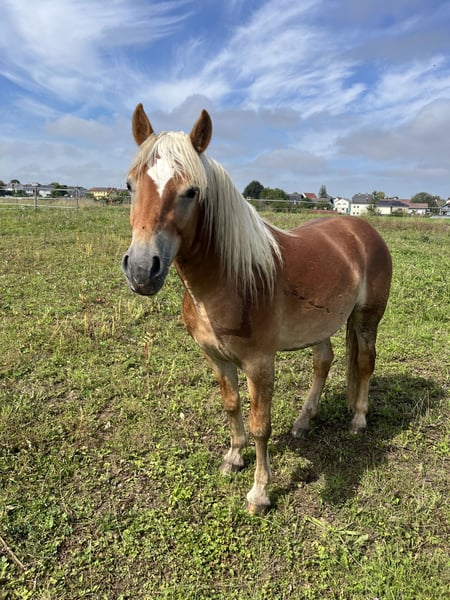 Mit schwerem Herzen verkaufen wir unseren selbstbewussten, liebevollen 2,5-jährigen Berti. Er wurde bei uns zu Hause geboren und durfte von Anfang an in einem stabilen Familienverband aufwachsen – lange Zeit gemeinsam mit seiner Mutter und seiner Halbschwester. Diese ruhige und soziale Kindheit hat ihn zu dem ausgeglichenen, menschenbezogenen Jungpferd gemacht, das er heute ist. Später wechselte er in eine reine Bubengruppe, wo er sich altersgerecht austoben und weiterentwickeln konnte. Berti ist das Ebenbild seines Vaters Barikal (auf den letzten beiden Fotos zu sehen): eine seltene B-Linie, kräftig, kompakt, mit starken Hufen wie ein Noriker – ein Pferd vom alten Schlag. Diese Ursprünglichkeit trägt auch Berti in sich. Gleichzeitig bringt er durch seinen Ox-Anteil von 4,69 % eine angenehme Sportlichkeit mit und gehört daher keinesfalls zu den langsamen Haflingern. Er vereint Kraft, Ausdauer und eine schöne, natürliche Bewegungsfreude. Seine Mutter stammt aus der sportlichen Linie und bringt zusätzlich Größe und Eleganz mit. Dadurch wird Berti voraussichtlich ein Endstockmaß zwischen 1,46 m und 1,51 m erreichen – ideal für alle, die einen kräftigen, aber dennoch gut nutzbaren Freizeitpartner suchen. Aufgrund seines Ox-Anteils besitzt Berti einen weißen Pass, da er in Österreich offiziell nicht als Reinzucht Haflinger gilt. Für uns ist er dennoch genau das, was ein Haflinger ausmachen sollte: ehrlich, robust, leistungsbereit und mit einem wunderbaren Charakter. Berti wird einmal ein verlässlicher Partner fürs Leben – für Wanderreiten, Kutsche fahren, Arbeiten im Wald oder einfach für viele gemeinsame Stunden. Ein Pferd, das mit seinem Menschen durch dick und dünn geht. Aktuell steht Berti in liebevoller Ausbildung bei Florian Oberparleiter (www.florian-oberparleiter), wo er eine ruhige, sanfte und pferdegerechte Ausbildung genießen darf. Bei ehrlichem Interesse und weiteren Fragen stehe ich sehr gerne zur Verfügung – natürlich auch über WhatsApp. Berti sucht einen Menschen, der seine Qualität, seine Herkunft und sein großes Herz zu schätzen weiß.