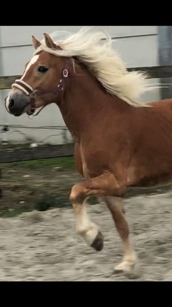 Bink ist ein 4-jähriger Haflinger-Rüde mit der schönen Rotvos-Farbe, die er von seinem Vater Liz Bergdorf geerbt hat. Er verfügt über fantastische Bewegungen, die sowohl für die Dressur als auch für die Kutsche geeignet sind; somit ist er das ideale Gebrauchspferd. Seine Mutter hat als Vater den bekannten Nachtregent. Sowohl Bergdorf als auch Nachtregent sind bekannt für ihre Gebrauchstüchtigkeit und haben dafür bereits mehrere Auszeichnungen erhalten. Bink wird das ebenfalls zeigen können; er ist jung, lernt aber sehr schnell. Er ist leicht im Umgang. Bink hat sein ganzes Leben in einer Herde verbracht. Wir haben begonnen, ihn ruhig an den Sattel zu gewöhnen. Derzeit läuft er ordentlich an der Longe, das Satteln klappt problemlos und auch das Aufsteigen ist kein Problem.