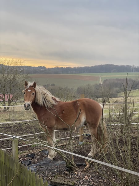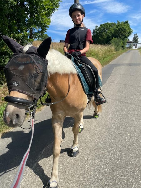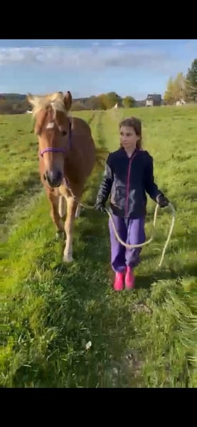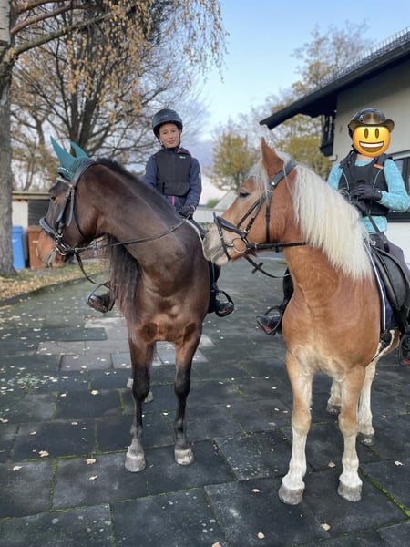 Muss leider unseren lieben und sehr menschenbezogenen Wallach verkaufen. Wir haben ihn mit 3,5 J. roh gekauft als zukünftiges Familienpony. Der Uran lebt im Offenstall mit einem Wallach zusammen. Er ist sehr verspielt und tobt gerne rum. Kennt Hunde und kann mit dem Hund zusammen Ausreiten. Kennt Kinder, kann von denen geputzt und geführt werden. Da er viel Go hat, ist er kein Kinderpony und auch nichts für unsichere oder ängstliche Reiter. Er kann auch von gut reitenden Jugendlichen geritten werden. Der Uran braucht eine klare, liebevolle und konsequente Hand. Mit dem richtigen Reiter ( Bezugsperson) an seiner Seite, ist er arbeitswillig, versucht zu gefallen und hat Potenzial für mehr. Er ist sehr ausdauernd, kompakt und wendig. Er geht überall durch, auch durch fließende Gewässer. Ideal für Wanderritte geeignet. Für ein Pony hat er einen raumgreifenden Schritt. Zeigt auch mal einen starken Trab. Sein Galopp ist etwas flach, aber dafür sehr gut zu sitzen. Dem Alter entsprechend geritten in allen 3 GGA und hat auch schon paar kleine Sprünge im Gelände unter dem Reiter gemeistert. Da es bei uns im Ort nur einen kleinen Reitplatz gibt, macht mir es kein Spaß dort zu reiten und dementsprechend hat der Uran wenig Übung dort. Platzarbeit ist noch nicht ganz sein Ding, aber er gibt sein bestes. Er liebt es im Gelände unterwegs zu sein, ob alleine oder zu zweit. Wir sind auch paar mal zu dritt ausreiten gewesen mit einem fremden Pferd und es hat ihm überhaupt nichts ausgemacht. Bei Fragen einfach melden Paar Eckdaten: -Geburtsdatum: 06.04.2021 ( halbes Papier, der Papa ist der Hengst Steeger und die Mama ist Quaterhorse ) ( auf dem letzten Bild zu sehen) -Stockmass: ca. 1.45 ( kräftig gebaut) -am 01.08.2024 gelegt -Am 24.06.2025 war beim Zahnarzt. -Hufe werden alle 8-10 Wochen gemacht - kennt Boxenhaltung - kennt Offenstall Das ist ein Privatverkauf Die Beschreibung wurde durch meine Eindrücke erstellt. Bitte nur ernst gemeinte Anfragen Keine Schulbetriebe Kein Kinderpony Keine Anfänger/ ängstliche Reiter Probereiten möglich, dafür berechne ich 35€ . Der Betrag wird beim Kauf abgezogen.
