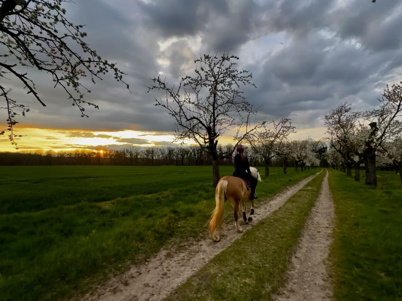 Zu Verkauf steht unser 5jähriger Haflingerwallach Archi. Er ist sehr menschenbezogen und super verträglich mit anderen Pferden. Er geht allein und in der Gruppe ins Gelände, ist dabei immer artig. In der Halle lässt er sich sehr angenehm reiten. Verkauft wird er nur, weil die Reiterin leider schon zu groß geworden ist, sonst würden wir uns nicht von diesem Ponyschatz trennen.