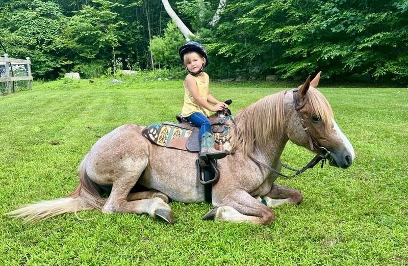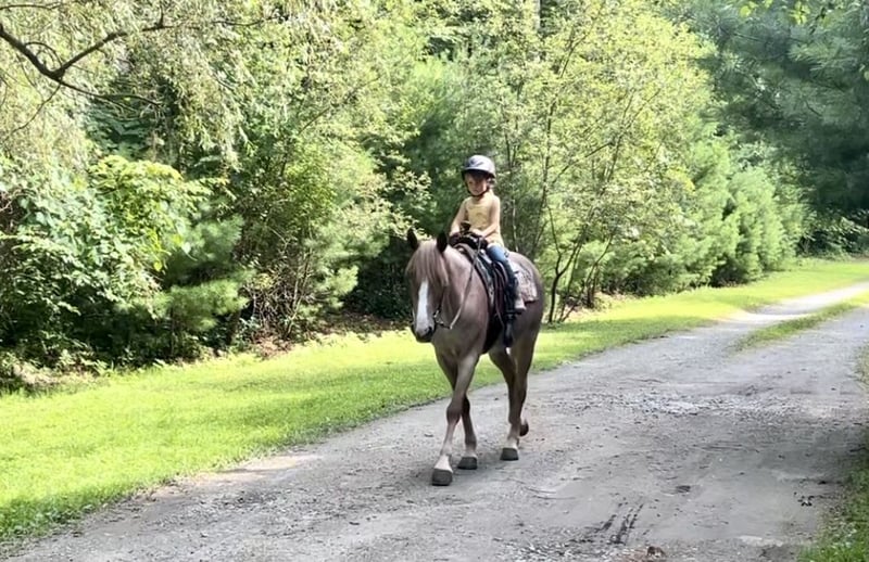 "AVAILABLE ON ONLINE HORSE AUCTION AT www DOT MagicHorseAuction DOT com BIDDING OPEN NOW thru TUESDAY | AUGUST 5TH! - BUY IT NOW AVAILABLE! *Final price will be determined on auction site* CONSIGNOR CONTACT INFO: Rocking J Performance Horses 860-377-4260 LOCATION: North Windham, CT Rosie is a 5 year old quarter horse x haflinger cross mare standing 14.1 hands. This attractive mare always aims to please and is a fun horse for a variety of riders. She has been to the state park several times, used for hack rides, and ridden English since she’s joined our program. Rosie will go right to work in the arena and is actually very smooth for her size. She will lope circles and takes both leads effortlessly. When ridden English she was introduced to ground poles, cross rails, and started on lead changes. Rosie has packed several riders through the state park this year where you will encounter bikes, dogs, downfall, and lots of water! She has never let us down no matter who we’ve put on her back whether it be my 3 year old daughter or a guest who’s never ridden before for a scenic trail ride.