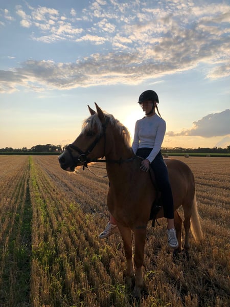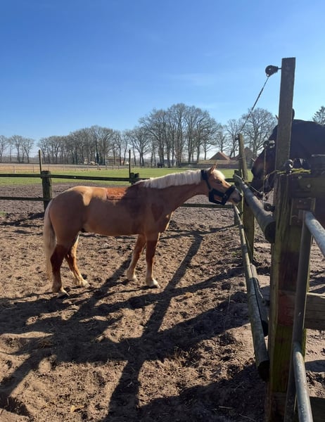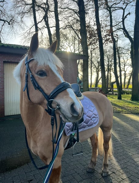 Nous recherchons pour notre adorable Haflinger gelding presque âgé de 6 ans, Snoopy, né le 26 mai 2020, un nouveau foyer aimant. Il a été mesuré à 1,44 m en décembre 2024. Comme notre fille (âgée de 15 ans) mesure 1,80 m, il devient malheureusement trop petit pour elle. Snoopy a déjà été doucement monté en selle, c’est un Haflinger sportif avec trois allures de base très bonnes. Lorsqu’on le mène à la longe, qu’on le brosse ou qu’on le longe, il est très proche des humains, attentif et courageux. En selle, en indoor, en outdoor, seul ou en groupe, nous le trouvons très confiant et bien dressé. Il a de l’expérience en compétition, allant de la reprise de dressage jusqu’à la E-Dressage, où il a déjà été placé. Récemment, il a également commencé l’entraînement au saut d’obstacles et a déjà participé à des concours, où il a été également placé. Snoopy montre beaucoup de plaisir lorsqu’il saute. Il pardonne aussi les erreurs de son cavalier et aide à ajuster les distances inappropriées. Il connaît le box et le paddock, et il s’entend très bien avec d’autres chevaux et poneys (il est plutôt de rang inférieur). Il est calme lors du pansage et se laisse facilement charger dans le van. En raison de son jeune âge, Snoopy n’est pas un poney débutant à lui seul, mais avec la bonne guidance, c’est un véritable poney de rêve, idéal pour un enfant ambitieux souhaitant débuter en compétition. Ce n’est pas une vente d’urgence, nous prenons notre temps pour qu’il trouve une famille aimante.