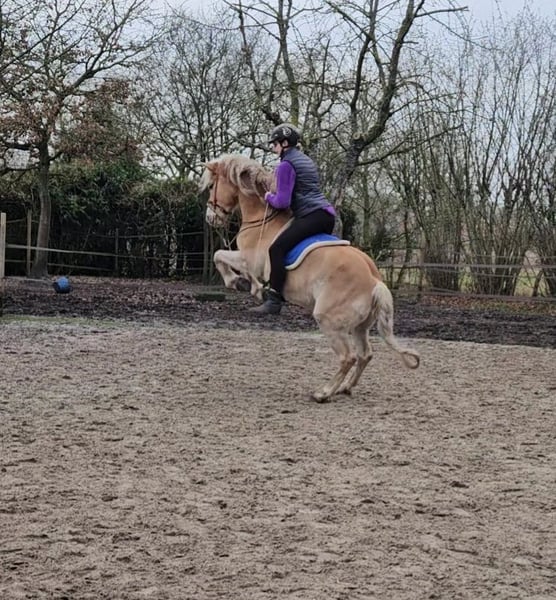 Umständehalber verkaufe ich meinen 7 Jährigen Haflinger Wallach, 145cm groß. Er ist ein sehr schlaues Pferd, lernt unglaublich schnell und möchte immer gefallen. Er wird schonend in der Akademischen Reitkunst ausgebildet und beherrscht schon viele Lektionen. Er liebt es sich in Versammlung zu präsentieren (Piaffe, Passage, Schulschritt) Er kennt alle Seitengänge in Schritt und Trab. Seine Lieblingsübung ist neben der Schulparade die Levade oder die Pesade. Sternchen hat super Hufe und ein ganz korrektes Exterieur. Er geht gerne ins Gelände, obwohl alleine noch wenig geübt worden ist. Er kennt die Arbeit am Boden, Handarbeit, Liberty reiten, Fortgeschrittenes Longieren. Ansonsten ist er ziemlich furchtlos und erschreckt sich sehr selten. Trotzdem nicht an reine Anfänger, weil er dafür einfach zu clever ist. Er trägt im Sommer eine Fliegendecke, damit kommt er super zurecht.