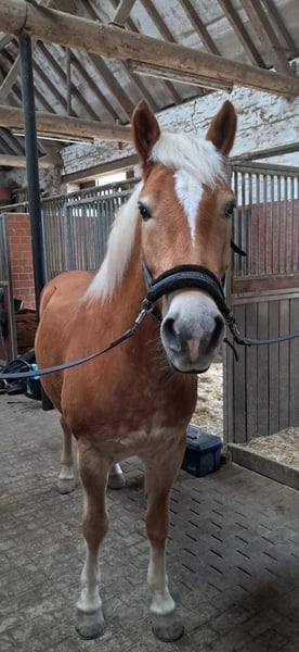 Zum Verkauf steht ein wunderschöner 8 jähriger Haflinger Wallach Mit seinem hellbraunen Fell und einem Stockmaß von 154 cm ist er ein echter Hingucker. Angeritten in Schritt und Trab, Galopp ist ausbaufähig Dieser junge Haflinger besticht nicht nur durch seine auffällige Farbe und sein gut proportioniertes Äußeres, sondern auch durch sein angenehmes Wesen. Als Wallach ist er ausgeglichen und gutmütig, was ihn zum idealen Freizeitpferd macht. Geboren und aufgewachsen in liebevoller Hand, wurde er sorgfältig und behutsam aufgezogen. Wenn Sie auf der Suche nach einem zuverlässigen, gut aussehenden und liebenswerten Freizeitpartner sind, dann könnte dieser Haflinger genau das richtige Pferd für Sie sein. Bitte kontaktieren Sie uns für weitere Informationen oder um einen Besichtigungstermin zu vereinbaren. Wir freuen uns darauf, Ihnen diesen besonderen Wallach vorzustellen. Inkl. Westernsttel neu, Dressursattel 2 Jahre alt Trense usw Platz vor Preis. Kauf auch ohne Zubehör möglich. Verkauf im Auftrag