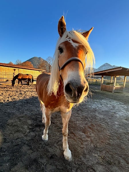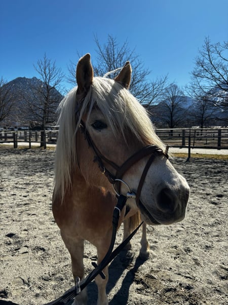 Since autumn, the handsome 7-year-old Haflinger gelding Navaro (height approx. 160cm) has been in our care. Now, this lovely fellow is ready and eager to finally meet his very own special person. Navaro is a sensitive and spirited horse; he can be extremely assertive at times and is typically Haflinger-stubborn. He requires clear and consistent leadership and therefore absolutely needs an experienced horse person by his side who knows exactly how to handle challenging horses and guide him through life with loving firmness. He is already ridden and will need a lot of training, targeted development, and daily engagement in his new home. Navaro is in excellent health, fully vaccinated, and with the right handling, he is up for any fun. In a herd setting, he is very uncomplicated and sociable. He tends to be higher in the hierarchy without taking on the leadership role. In his new home, he definitely wishes for a diverse herd with plenty of playmates. Navaro will be placed in an open stable or a night box with daily pasture access.