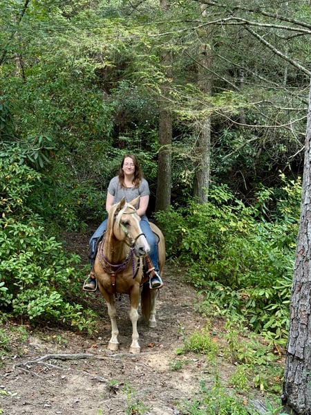 "AVAILABLE ON ONLINE HORSE AUCTION AT www DOT MagicHorseAuction DOT com BIDDING OPEN NOW thru TUESDAY | FEBRUARY 17TH! - BUY IT NOW AVAILABLE! *Final price will be determined on auction site* CONSIGNOR CONTACT INFO: Michelle Sailor #612-221-0855 LOCATION: River Falls, WI " "Kilmer is a gelding who checks a lot of boxes. He’s super cute, friendly, versatile, and has the greatest personality. He’s even got a dolphin shaped spot jumping over his tail! He rides inside and outside. He’s good with flags and obstacles. He side passes, knows his leads, is good with leg pressure, rides direct and neck rein. He was at an English barn before I got him, but I’ve mainly camped with and trail ridden him. Took him on week long trips to Tennessee last year and Yellowstone this year. Jumps right into the trailer and backs out calmly. He’s an energizer bunny and will go all day or all weekend. Crosses water and bridges with no issues and walks through brush, over logs, and off trail calmly. We rode through a ground bee hive last year and he was one of the only horses that did not freak out and essentially just high stepped through the area. He rides at the front, middle, and at the back of the group with ease and is very friendly with other horses. At Yellowstone this year, he was in a stock trailer between two horses he didn’t know when we went to trailheads and got along with them as though they’d known each other forever. For riding alone outside, he does well with someone who’s ridden some before, but is great in a group. He’s very curious and willing to try new things. He has clean legs and is barefoot, I’ve never had any issues with soundness. I did put four shoes on him for the Tennessee and Yellowstone trips though and he stood great for the farrier. Very easy keeper, stalls well, and pastures well with anyone. He’s a very low maintenance horse. I’m selling him because unfortunately, I’m not financially able to keep him anymore."