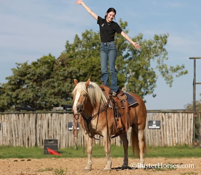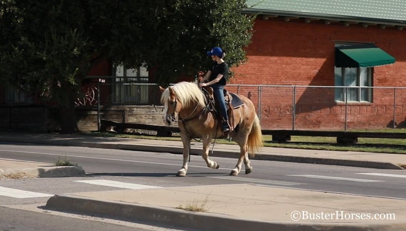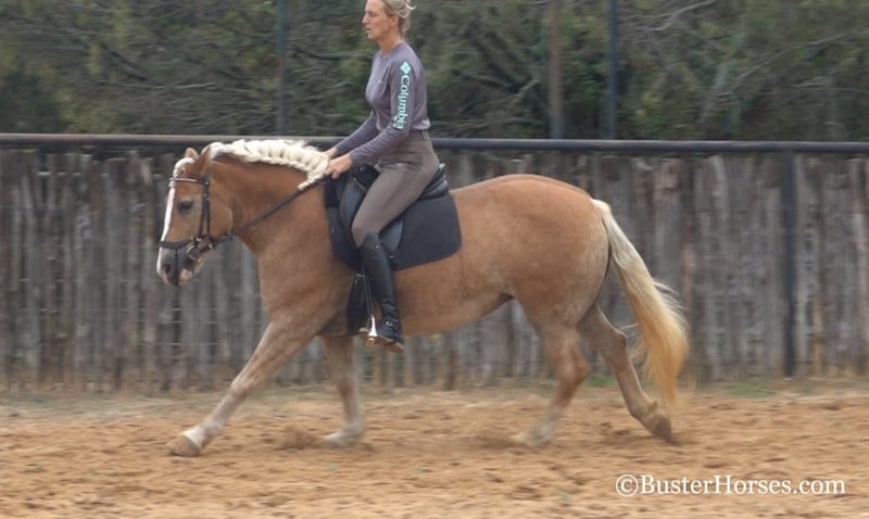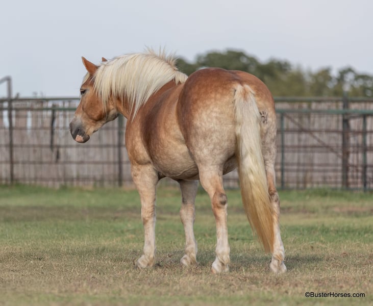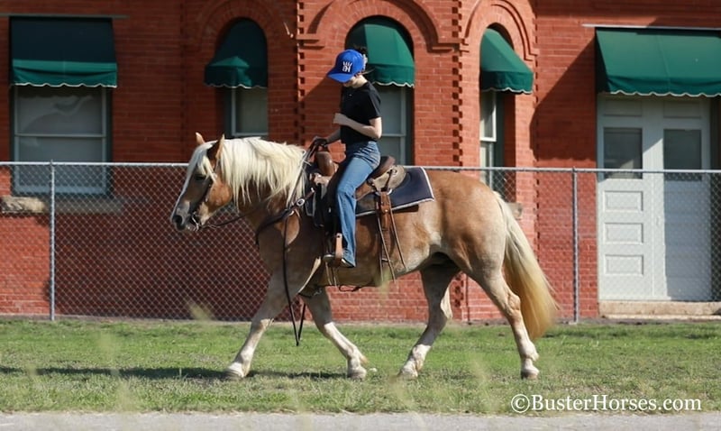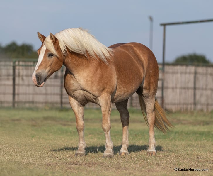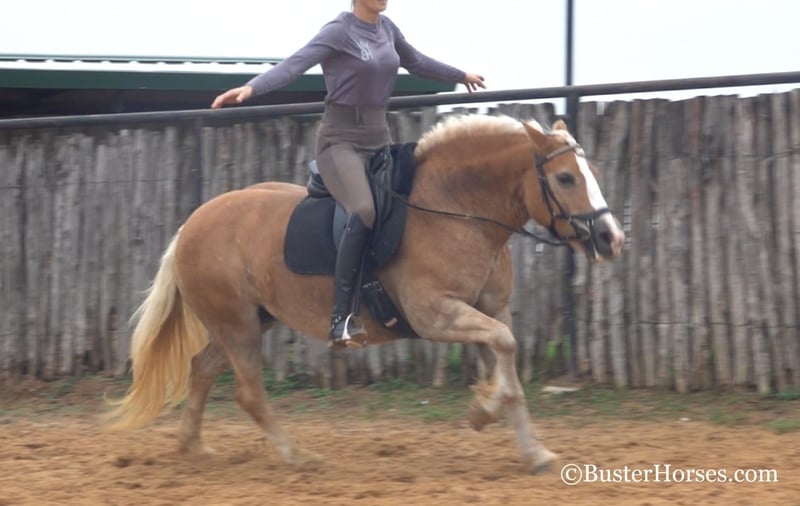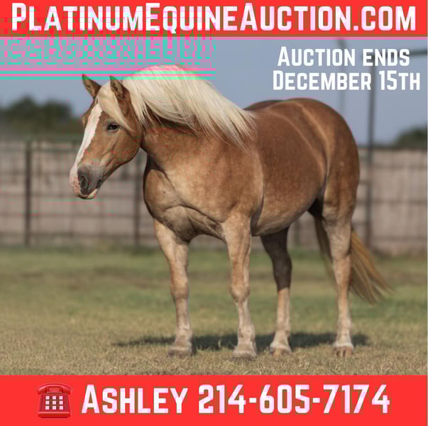ONLINE AUCTION Place your bids at www.PlatinumEquineAuction.com Starting Bid $3500 Auction ends December 15th, 2024 Need a new saddle? Check out White Rock Saddles on our website or Facebook! “Gloria” – 14H, 8 year old chestnut Haflinger mare. We have the unique opportunity to offer a home-raised, only one-owner. beloved personal/family horse. This sweetheart has been someone’s pride and joy and she reflects that! She is an absolute doll to be around and so much fun – she is absolutely stunning – she is as wide as she is tall – literally!!! She is also gorgeous, has a beautiful head, has a ton of self-carriage and elegance, and is absolutely as shapey as one comes! Gloria is incredibly smooth gaited, easy to ride, and she is the same horse once a year – once a month – or five rides a week. She has tons of natural rate and stop, she is always happy to plant to a stop at the mention of “whoa” – but is also still very light and forward and easy off of your legs! Lots of feel, and very responsive, not one you have to “peddle” everywhere, she has a great work ethic, but is also happy to rate down and stop anytime. Gloria would be a world class entry level eventer, Hunter/Jumper, dressage. or Pony Club mount. Or she is an absolutely deluxe pleasure horse, family horse, trail horse, clinic, or competitive trail riding horse! Would also be great at the bridle-less competitions, she has lots of guide for a big girl, and her rate and stop is about as always-there, as they come in a horse! This big and wide mare is an absolute blast to ride. She loves to go places, loves trail rides, loves parades, loves going in to town – she hops right in the trailer and is always happy to go to work! She loves people, and loves to have a job. She has an absolutely incredible personality!!! She is very loving and affectionate. She gives kisses…. and smiles – on command!!! But still has very respectful, professional, tidy manners on the ground. This is one of those ultimate dream personal horses that everybody hunts down and they do not come up for sale often! Don’t miss out on Gloria! To see additional videos, go to our website: BusterHorses.com or our Facebook page Buster Horses. Check our website for buyer reviews, more videos, additional info: etc: https://busterhorses.com/Gloria Gloria was just shod this week, her teeth were also done by an equine dentist, she had her ears preemptively treated for ticks, and she was also power packed wormed. She is good to shoe, has great feet and also goes well barefoot – if her new owner prefers her to be barefoot, we can have her shoes pulled and trim her prior to her heading to her new home. She will arrive at her new home up-to-date and ready to go to work! Please call anytime for more information at 214-605-7174 Gloria is located in Weatherford, TX – one hour from Dallas / Fort Worth International Airport. She is an easy day trip or fun overnight trip to come try out, from anywhere! We are experienced, knowledgeable sellers, and we can help with quickly arranging affordable shipping to any buyer’s location – we have experience shipping worldwide – including regularly to Hawaii, Canada, Mexico, Europe, and South Africa. Check our website for buyer reviews, more videos, additional info: etc: https://busterhorses.com/Gloria ONLINE AUCTION Place your bids at www.PlatinumEquineAuction.com Starting Bid $3500 Auction ends December 15th, 2024 Need a new saddle? Check out White Rock Saddles on our website or Facebook!