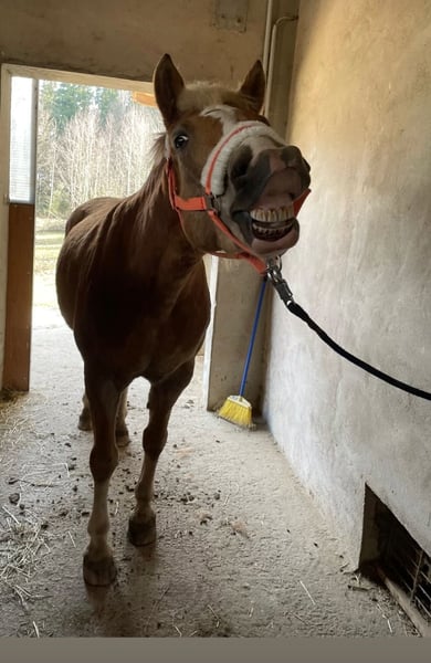 Schweren Herzens gebe ich meine Hafi Stute Peppa ab , Pepps ist eine sehr Brave Stute mit Charakter. Sie ist freundlich und Kinder lieb ich würde sie aber nicht als schulpferd abgeben da sie mit wechselnden Reitern nicht gut klar kommt denn sie testet Anfangs Grenzen und man sollte konsequents und Durchsetzungsvermögen haben. Sie ist auch in der Dressur A ausgebildet und springt gern. Bodenarbeit und rückwärts einparken beherrscht sie auch, sie kann Auf Kommando Lachen sieht man auch auf den Fotos. Am liebsten geht sie Ausreiten auch allein ist ihr alles sehr egal. Am Reitplatz muss sie sich manchmal ärgern man kennt das indem sie unruhig mit dem Kopf wird jetzt nicht gefährlich aber auf Turniere wär sie wahrscheinlich nicht tauglich . Ansonsten war sie immer gesund geht barhuf und ist wirklich eine treue Seele mit ihr kann man echt alles machen . Sie kann auch bei mir Untergestellt bleiben .......