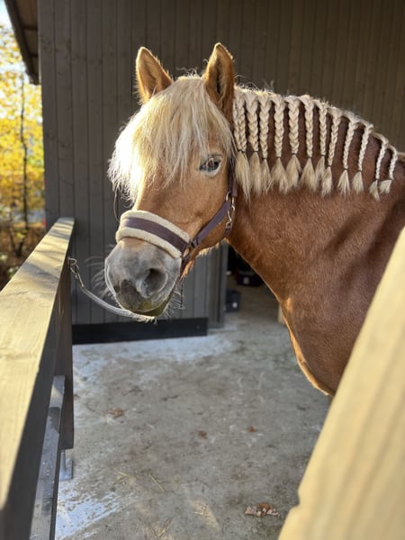 We are selling our Haflinger mix mare, likely a Polish Coldblood, who has a Polish passport! Born on February 14, 2014, in Poland. She is a very dominant mare, which unfortunately she is also expressing towards our older pony mare. Additionally, she doesn't quite get along with our 24/7 hay supply. Therefore, we have to say, "Well-intentioned isn't always well-executed," and are now looking for a new home for her. A small health check from October 2024 is available! There is a blood test from January 2025 and X-rays of her front hooves, indicating she must have had laminitis in the past. She is currently struggling with her metabolism, and unfortunately, we lack the time to give her the proper exercise she needs. She is fed hay and stands on straw in an open stable; she is also familiar with a box stall. We supplement her diet with high-quality minerals and a variety of herbs. She requires a confident handler who can give her security; with this, she is even capable of going alone into the terrain! She needs to be retrained. Videos and additional pictures can be sent upon request!