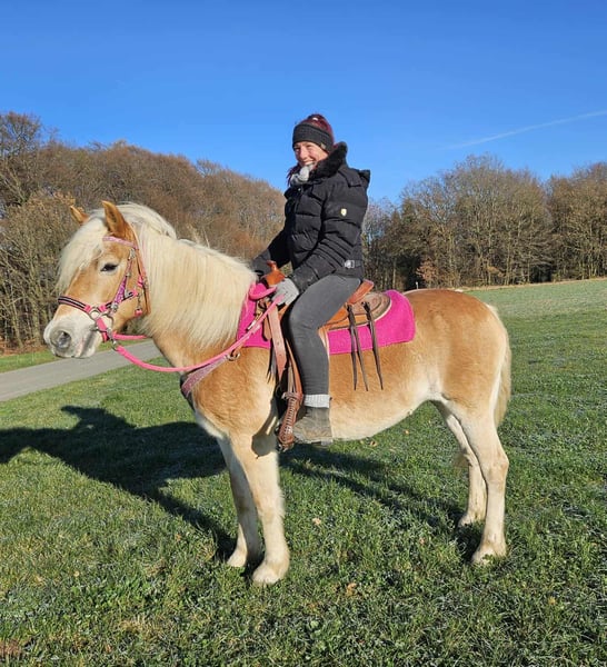Haflinger-Stute brav, gelassen & ein echtes Freizeitpony Eckdaten: • Name: Diva • Rasse: Haflinger • Geschlecht: Stute • Alter: 12 Jahre • Stockmaß: ca. 1,50 • Ausbildungsstand: Freizeitpony, geritten im Gelände • Preis: 5900,- Zum Verkauf steht unser hübscher Haflinger-Stute DIVA “ ein ehrlicher, zuverlässiger und liebevoller Partner, der mit seinem charmanten Wesen und seiner coolen Art begeistert. DIVA ist: – absolut brav und unkompliziert im täglichen Umgang – ruhig, freundlich und immer gut gelaunt – geht sowohl alleine als auch in der Gruppe entspannt ins Gelände – kennt Kinder, Hunde und Landmaschinen – steht brav beim Putzen, Satteln und Schmied – ein echt tolles Pony, das Freude an der Arbeit und am Miteinander hat Mit seinem ausgeglichenen Charakter und seiner Gelassenheit ist Toni das perfekte Freizeitpony für Reiter, die ein zuverlässiges, nervenstarkes und unkompliziertes Pferd suchen – ideal für Ausritte, Freizeit oder Bodenarbeit. Perfekt für: Freizeitreiter, Familien oder Wiedereinsteiger, die ein sicheres, treues und freundliches Pony suchen, mit dem man einfach Spaß haben kann. Unsere Pferde: – regelmäßig entwurmt – vom Schmied & Osteopathen betreut - AKU-MICROCHIP -E-PAß ist immer dabei . Hofladen: Zubehör, Sättel & Trensen erhältlich Transport auf Wunsch günstig organisiert ✅ Unser Service: – 3 Monate Umtauschrecht – Proberitt: 35 €, jedes weitere Pferd 25 € (beim Kauf am selben Tag angerechnet) – 100 € Sofort-Rabatt bei Abholung/Transport am selben Tag – Persönliche & ehrliche Beratung Anfragen bitte nur telefonisch: 0171 – 4001968 Täglich erreichbar: 8–20 Uhr ⚠️ Keine E-Mail oder WhatsApp ⚠️ Alle Angaben ohne Gewähr
