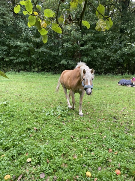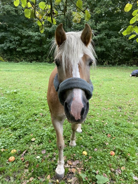 Malheureusement, notre jument de 15 ans est maintenant seule dans notre écurie. En raison de son âge, nous ne souhaitons plus garder d'autre cheval. Elle a eu un poulain jusqu'à présent, qui a été primé en or et a été approuvé en tant qu'étalon. Elle a tendance à tousser au printemps et à souffrir d'eczéma d'été en été, ce qui la rend parfois indisponible pour le travail monté. Sinon, c'est une jument robuste avec de bons mouvements. Jusqu'à il y a cinq ans, elle a été régulièrement montée et attelée. En compétition, elle a été présentée jusqu'à la catégorie A en dressage.
