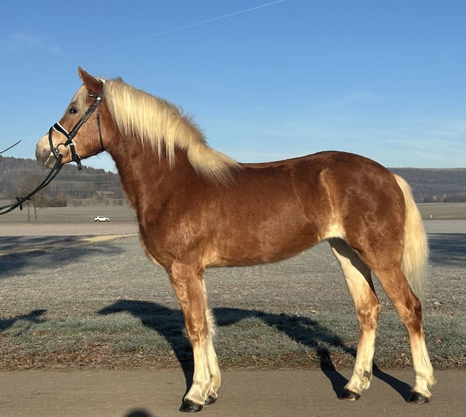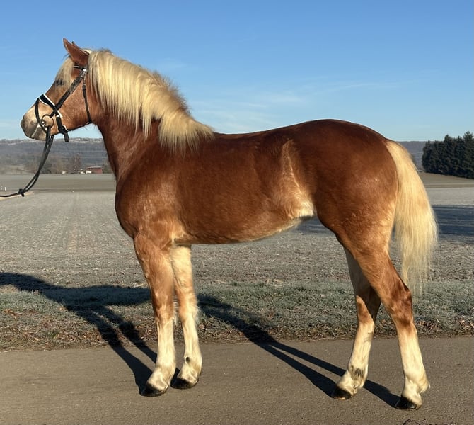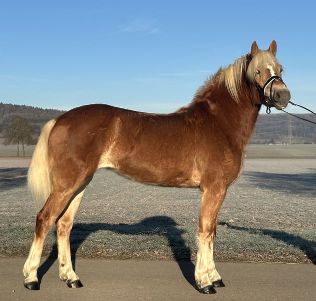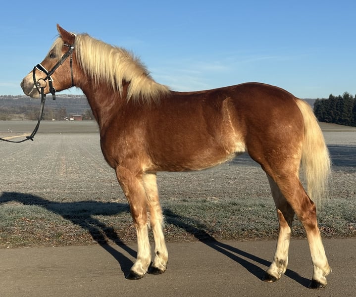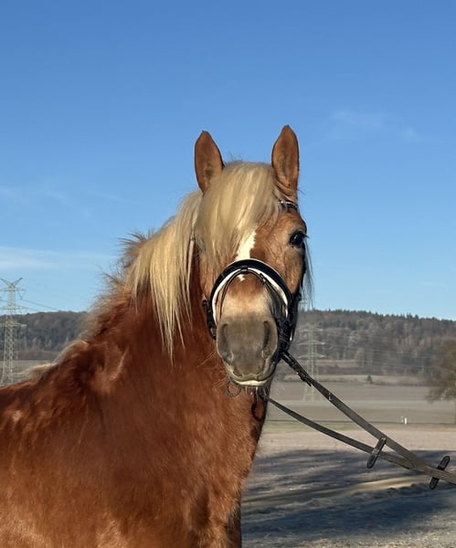 Schöne und sehr groß gewachsene Stute die im Gelände und in der Halle geritten sowie auch zweispännig gefahren ist . Sie kennt Offenstall , Herdenhaltung und ist dabei super verträglich und unkompliziert