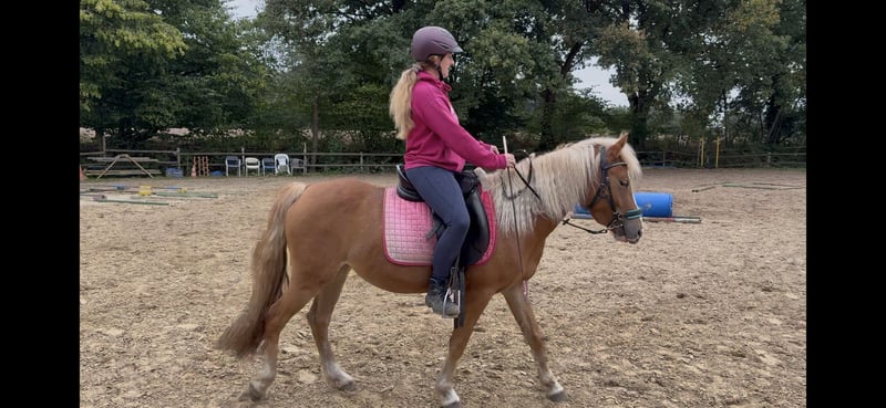 Beautiful 3-year-old Haflinger cross mare. She is approximately 14.2 hands. This stunning 3-year-old pony mare, Malou, was born on July 5th, 2022. Her sire is an Edelbluthaflinger, and her dam is a riding pony. Malou is well-behaved and easy to handle. She has been lunged, loads calmly into the trailer, and is familiar with trail rides, obstacle courses, walks, cars, dogs, and cats. She can be ridden in walk. She is regularly dewormed, has hooves that are easy to shoe, and currently measures about 14.2 hh. Malou is not a pure children's pony. In the past, she has occasionally shown that she does not always get along with children. However, this has improved significantly in recent months, and she now allows children to groom and lead her without any signs of insecurity. A fantastic pony, ideal for someone looking to further develop her training. Location: Near Münster