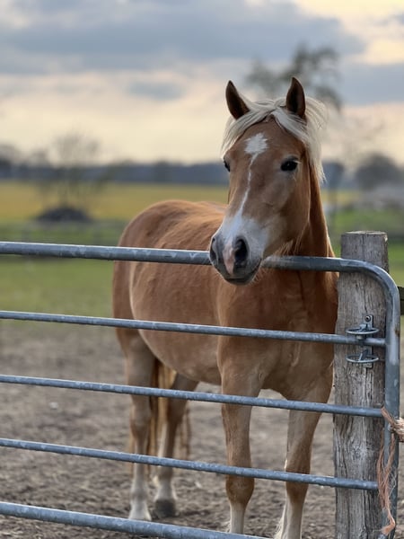 Zum Verkauf steht unsere aus eigener Zucht und Aufzucht stammende 3,5 Jahre alte Haflingerstute Ally. Geboren am 3.6.22 Ally ist eine aufgeschlossene, selbstbewusste Haflingerstute. Sie ist in einer kleinen Jungpferde-Herde aufgewachsen. Im Sommer stehen unsere Jungpferde 24/7 auf Weide. Sie ist ausgestattet mit guten Grundgangarten, ist langbeinig, mit 1,50/1,51m zur Zeit groß gewachsen, mit zur Größe passendem Fundament. Der ein oder andere Zentimeter wird sicher noch nach kommen. Altersbedingt ist sie natürlich kein Anfänger- oder Kinderpferd. Da sie relativ spät im Jahr geboren ist durfte sie letztes Jahr noch einmal die Sommerweide genießen. Nun ist sie soweit, dass sie neue Dinge erlernen darf. Was wir suchen, ist jemand, der diese Stute weiter professionell ausbildet/ausbilden lässt.… sie fachgerecht fordert und fördert, Spaß mit ihr hat und ihr ein schönes Ponyleben schenkt. Ab 1.6. geht sie in Profiberitt, dann steigt der Preis monatlich um 1000€. Zwischenverkauf vorbehalten. Besichtigung ist täglich nach Absprache möglich. AKU kann durch mitgebrachten Tierarzt durchgeführt werden.