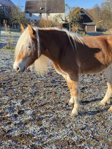 Verkaufe liebe Haflinger-Stute – ideal für die Freizeit! Diese charmante Haflinger-Stute wurde im Jahr 2021 geboren und überzeugt durch ihr freundliches Wesen und ihre Vielseitigkeit. Mit einem Stockmaß von ca. 144 cm ist sie perfekt für Reiter, die ein zuverlässiges und angenehmes Pferd suchen. Sie ist bestens geeignet für die Freizeitgestaltung, ob ausgedehnte Ausritte, Spaziergänge oder entspannte Stunden im Gelände. Samira ist gesund, hat den Tierarzt nur beim Impfen gebraucht. Sie war 9 Wochen in Beritt und hat dort Seitengänge, Fahren vom Boden, Freies Reiten im Schritt und Trab, Longieren in allen Gangarten und vieles mehr kennen gelernt. Aktuell wird sie von einer 13 jährihem im Gelände geritten. Sie liebt es als Handpferd mit ins Gelände zu gehen und mit ihrem Menschen zu kuscheln. Samira wird gebisslos geritten und lebt im Offenstall, das soll auch so bleiben. Als Fohlen wurde sie mit einer 7,7 prämiert und eignet sich für alle sparten der Reiterei. . Natürlich kennt sie alle möglichen Fahrzeuge😅 sowohl Autos, Traktoren, LKW oder Zug bringt sie nicht aus der ruhe Haflinger Typisch kann sie auch mal einen Dickkopf haben, da muss man sich durchsetzen können, natürlich ist sie Schmiede-, Verlade- und Tierarztfrom. Bei Interesse oder für weitere Informationen stehe ich gerne zur Verfügung. Ein Kennenlernen lohnt sich!