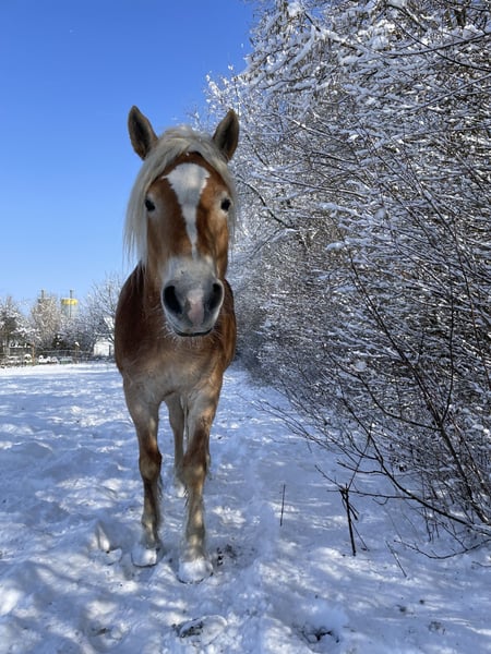 … mit keckem Charakter und tollen Gängen im modernen Reitpferdetyp, die sich hier tierisch langweilt, sucht ebenbürtigen Partner für gemeinsame Abenteuer. Wegen Aufgabe der Pferdehaltung schweren Herzens in gute fördernde Hände abzugeben, wo sie viel bewegt werden. Wir würden gerne beide zusammen abgeben. Da sie doch sehr unterschiedlich sind und wir für beide einen guten Platz suchen, ist auch Einzelkauf möglich. Dazu müsste man sich abstimmen, dass sie gleichzeitig den Stall verlassen, da wir haben keine weiteren Pferde haben. Beide durften ihre(n) ersten Sommer auf der Alm verbringen. Wir kauften sie im September 21 als Absetzer/Jährling von einem Tiroler Züchter (Nähe Ebbs), gewöhnten sie langsam ans Reiten, machen viel Boden- und Freiarbeit. Sie sind nun nach rund 4 1/2 Jahren liebevoller Offenstallhaltung bei uns am Bauernhof bereit für die weitere Ausbildung. Sie kennen Kinder, Hunde, landwirtschaftliche Fahrzeuge, Radfahrer, etc, Im Sommer bei vereinzelten Spaziergängen / Schrittausritten zeigten sie sich entspannt. Malena 5 Jahre, mit „Schnäuzel“: quirlig, frech (noch etwas unerzogen), schlau, aufmerksam, braucht jemanden, der sich von ihrem anfänglichen Gezicke nicht beeindrucken lässt, und regelmäßige Bewegung, kennt Reitergewicht im Schritt, Trab, Galopp. Man muss noch in der Mitte stehen (wurde aber seit gut einem Jahr kaum geritten und nur von unten bewegt, da ich eine langwierige Knieverletzung durch ein fallendes Scheunentor hatte und seit Mitte März frisch operiert bin) Raumgreifende federnde Gänge, wäre auch gut im Sport aufgehoben eher rangmittig, sucht schnell einen Kraulpartner, sehr intelligent, möchte Entscheidungen (mit-)treffen, dennoch Guter Teamplayer wenn man ihr Vertrauen gewonnen und ihren Hafi-Sturkopf überzeugt hat, Möglicher Schwerpunkt: Freizeit, Dressur, Fahren, Zucht. Sie sind sehr menschenbezogen und zutraulich, lieben es geputzt/gekrault zu werden. Malena, unser Prinzesschen, zickt anfangs gerade beim Putzen gerne (wehe du kraulst mich nicht an meiner Lieblingsstelle, da hab ich sie wohl etwas verwöhnt), ist aber händelbar. Sie können aber auch ihr Jungpferde-Temperament rauslassen. Bei regelmäßigem Training sind sie ausgeglichen und sehr sportlich. Mit ihrer Abstammung eignen sie sich auch gut für die Zucht. Für Malena ist reine Offenstallhaltung ungünstig, sie braucht v.a. um die Dämmerung einen Rückzugsort vor den Fliegen und viel Pflege, was sie in letzter Zeit bei uns zu wenig hatte. Sämtliches Zubehör kann, falls gewünscht, günstig mit erworben werden. Wir hoffen, es finden sich die richtigen Menschen. Bei ernstem Interesse gerne melden! Bettina