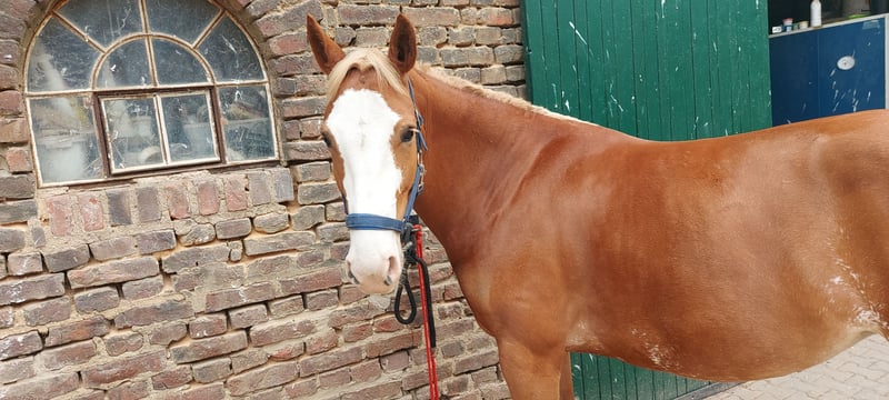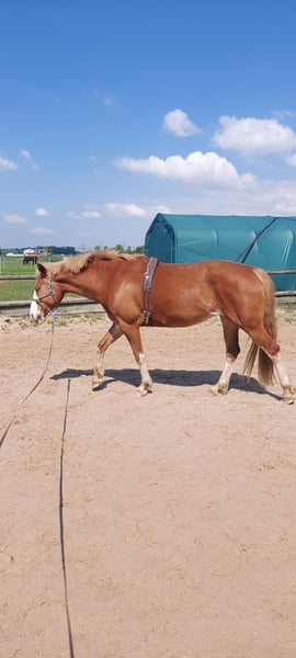 Ik ben op zoek naar een ervaren nieuw thuis voor mijn 5-jarige Haflinger-Duitse Reitpony-merrie (1,57 m). Ze is aangezad, maar is nog niet veel gereden, dus alleen geschikt voor ervaren ruiters. Helaas heb ik niet genoeg tijd om haar verder op te leiden. Ze is een vrij dominante, extraverte maar ook gevoelige merrie met veel energie. Ze houdt van werken en is altijd gemotiveerd. Ze heeft een duidelijke, zekere leiding nodig, maar plezier in het rijden mag niet ontbreken. Ze gaat veilig aan de longeerlijn alle drie de basisgangen, en onder het zadel loopt ze ook goed in draf en stap. In galop mist ze nog de juiste balans onder het zadel. Ze houdt van grondwerk en afwisseling in de training. Ze gaat hier probleemloos naakte hoeven, laat zich laden, houdt van grondwerk en longeren. Ze kent een open stal, 24/7 wei en ook 's nachts een paddockbox. Helaas heeft ze zomereczeem, maar dat is momenteel goed onder controle met de juiste dekking en verzorging. Proefritten mogelijk bij serieuze interesse op de rijbak. Plaats gaat voor prijs. Transport binnen een straal van 100 km mogelijk in overleg.