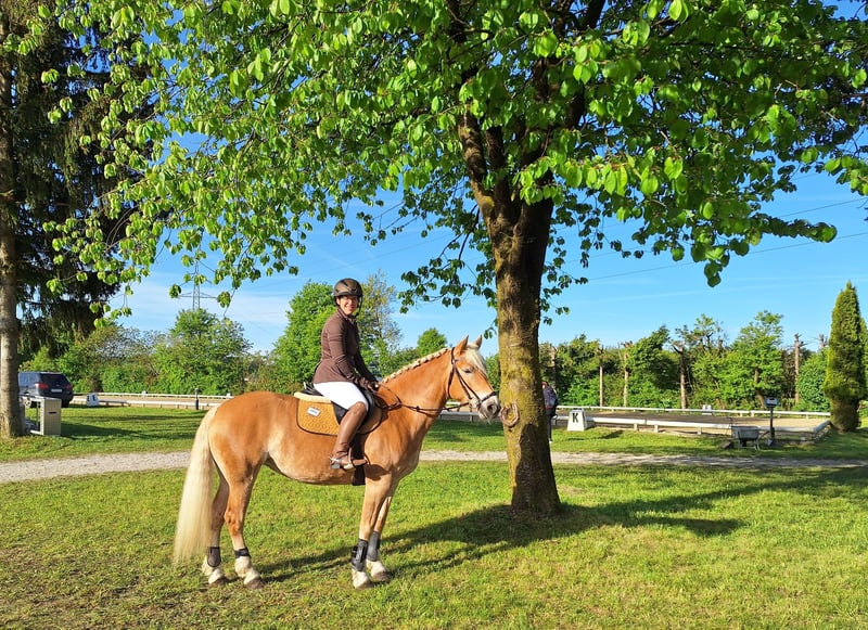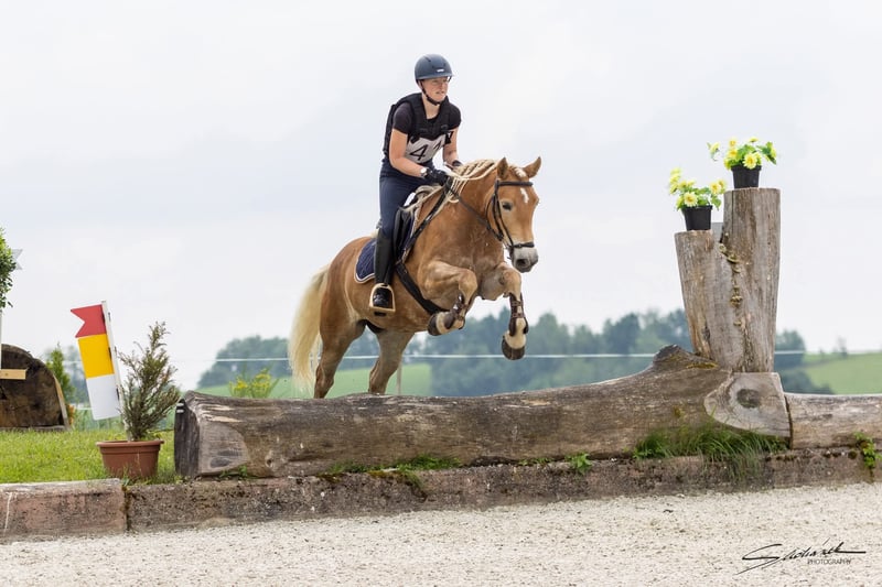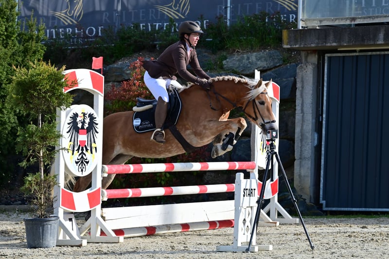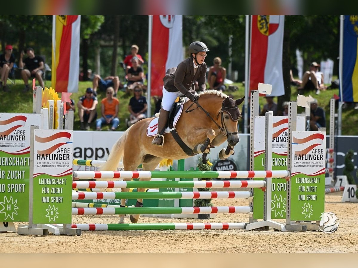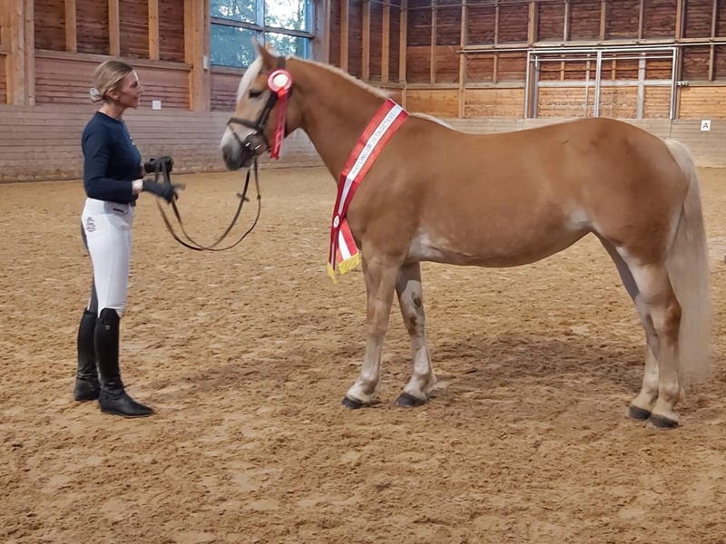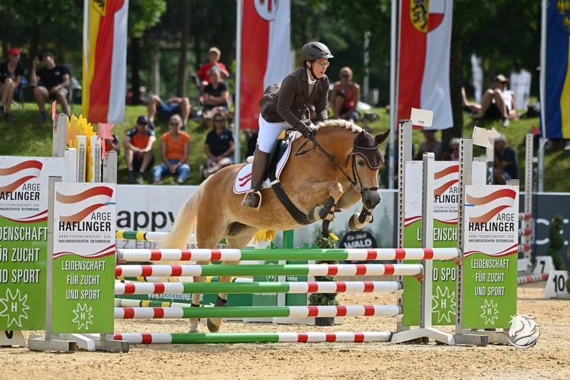 hochmotivierte, leistingsbereite Haflingerstute mit außergewöhnlicher Vorderhandmechanik. Europachampionat Jungpferde 2024 5. Platz, bestes österr. Jungpferd dieser Sparte 2024. Erfolgreich im Springen und Vielseitigkeit vorgestellt. Aufgrund guter Übersetzung kein Problem mit Warmblutdistanzen. Ein- und Zweispännig gefahren. Stutleistungsprüfung 2. Platz. Wird wegen Umstieg auf Großpferde verkauft.