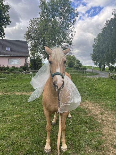 **Sales Advertisement: Beautiful Haflinger Mare for Sale** For sale is our lovely Haflinger mare Paula, born in 2018, with a height of 15.3 hands (156 cm). Paula captivates with her friendly nature and uncomplicated demeanor. She is excellent for leisurely walks and relaxed hours in the countryside. Her somewhat skittish personality makes her unsuitable for beginners, as she requires a lot of trust from her owner. She is well-trained, easy to handle, and has already gained some experience under saddle, lunging, and carrying weight on her back. Paula is healthy, vaccinated, and regularly dewormed. Additionally, she is barefoot. If you are genuinely interested or have any further questions, we look forward to hearing from you!