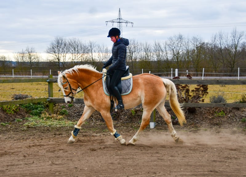Zum Verkauf steht eine 5-jährige XXL Haflingerstute mit einem sensiblen Charakter. Sie präsentiert sich sowohl im täglichen Umgang als auch unter dem Sattel sehr rittig, sowohl in neuen Umgebungen als auch im Gelände. Seit Anfang des Jahres wird sie geritten und zeigt ebenfalls sehr viel Talent am Sprung. Sie ist aufgrund ihrer Temperamentes nix für Anfänger. Sie neigt in Stresssituationen zur Hysterie und braucht jemand der das dann mit viel Ruhe aussitzen kann.Eine Stute die gefallen will, aber jeden Tag Arbeit braucht. Sie hat bereits ein sehr typvolles Hengst Fohlen, welches sich modern und bewegungsstark präsentiert. Dies macht sie sowohl für die weitere sportliche Ausbildung als auch als zukünftige Zuchtstute interessant. Ein ganz besonderes Nachwuchspferd. Dabei ist sie ein echter Hingucker, typstark und mit viel Ausstrahlung. -Turnierpferd eingetragen -Stubuch Eintragung 7,4